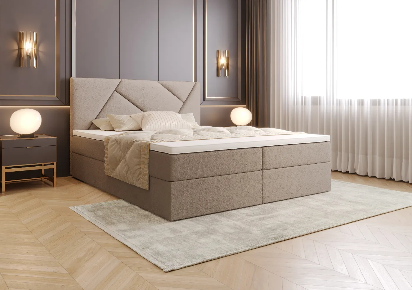 Łóżko Kontynentalne 200x200 TORIA z pojemnikiem i topperem beżowe tkanina welurowa