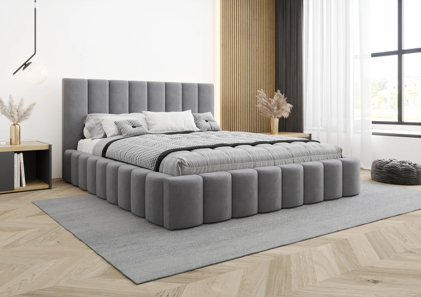 Łóżko Elio SLIM to propozycja dla osób ceniących sobie wyjątkowy styl i precyzję wykonania. Jednym z jego najbardziej unikalnych elementów jest wielopanelowy zagłówek, który zachwyca swoim nowoczesnym wyglądem. Panelowe boki i przód łóżka, wykonane z niezwykłą starannością, nadają meblowi niepowtarzalnego charakteru, czyniąc go centralnym punktem każdej sypialni.