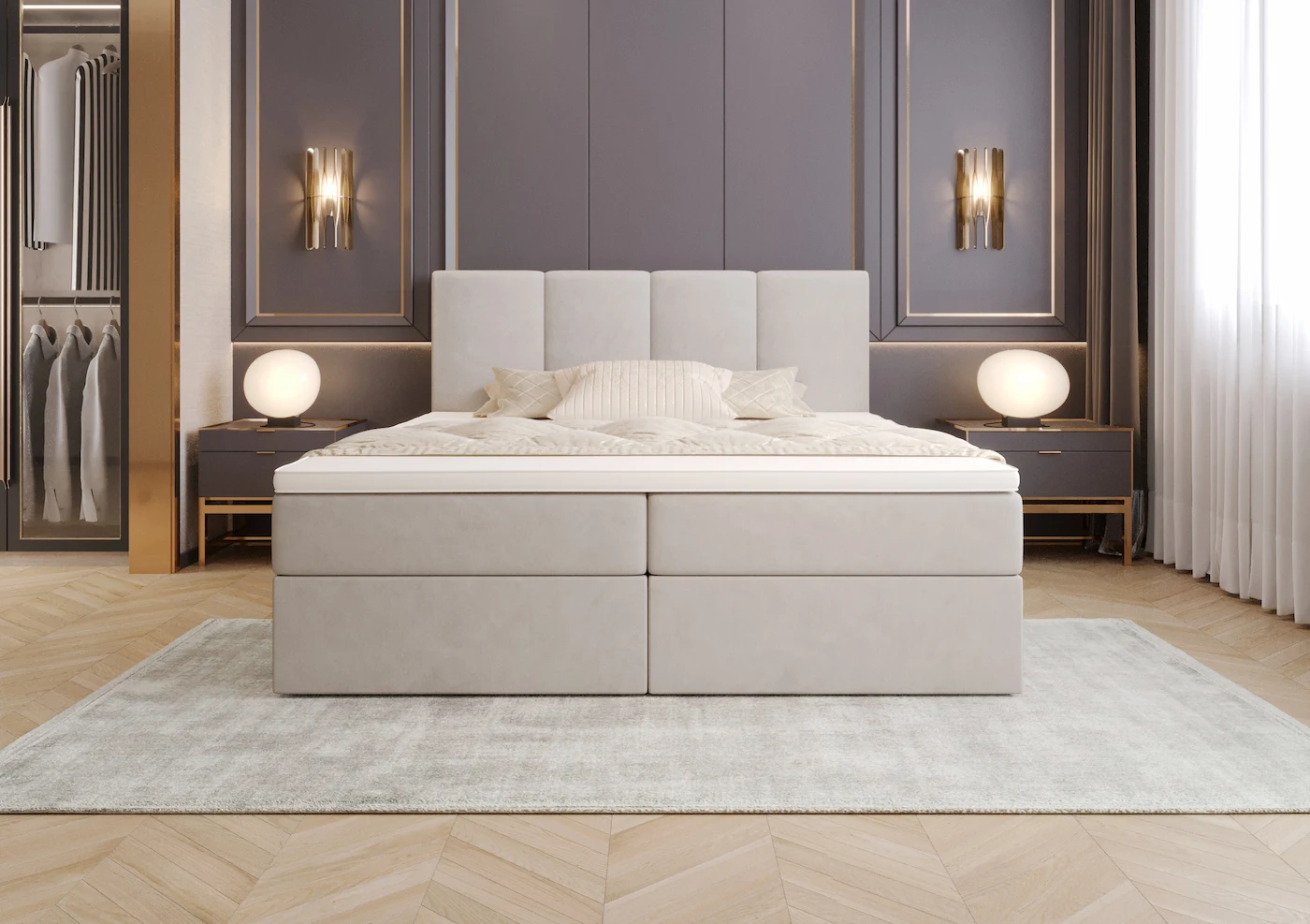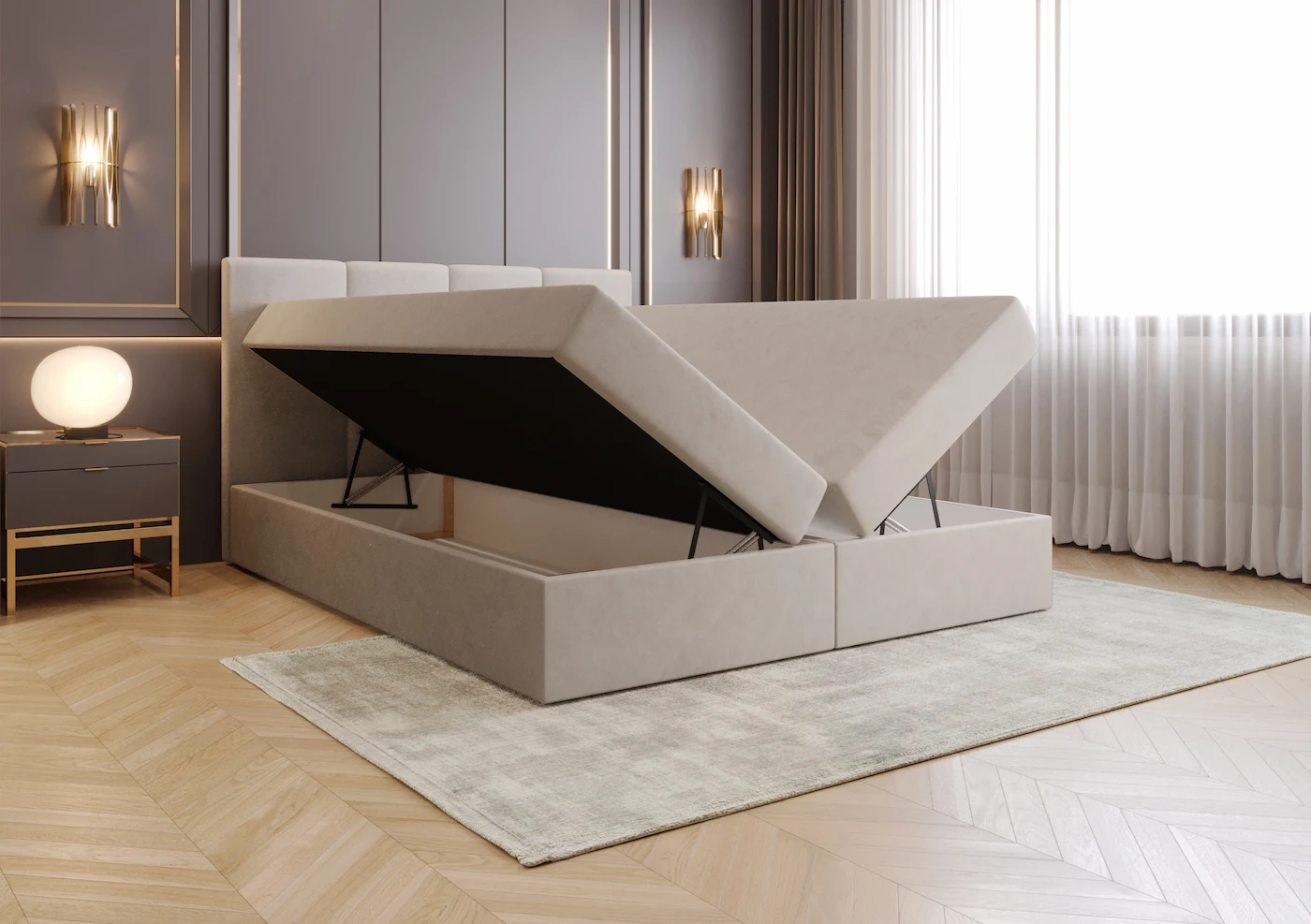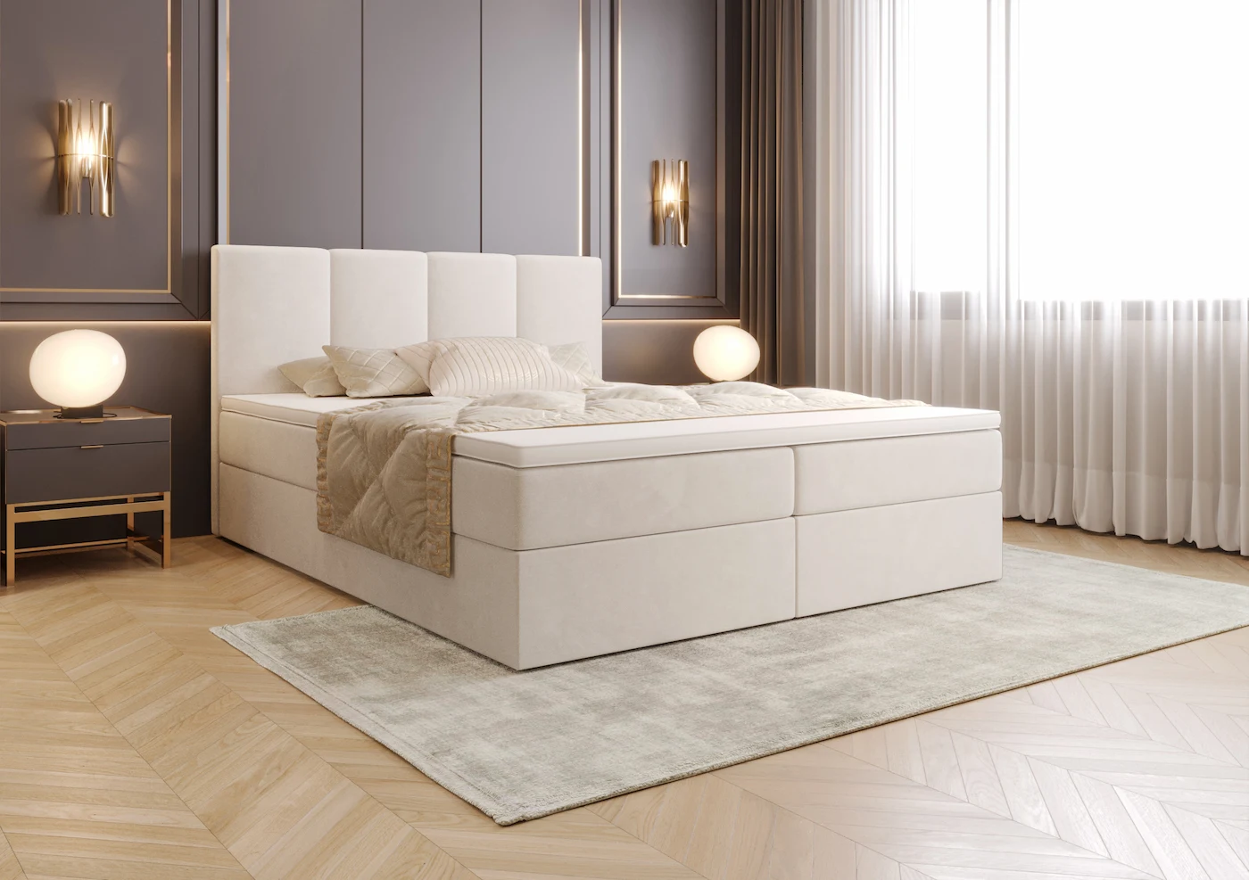 Łóżko Isabel wyróżnia się ręcznie wykonanym czteropanelowym zagłówkiem, który nadaje wnętrzu wyjątkowego charakteru. Zagłówek został zaprojektowany z myślą o komforcie użytkowania, zapewniając wsparcie podczas wieczornego czytania, oglądania telewizji czy relaksu. Jego harmonijna kompozycja i staranne wykonanie podkreślają stylowy wystrój sypialni.