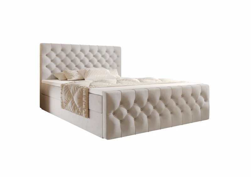 Łóżko kontynentalne 140x200 TESSA z pojemnikiem i topperem beżowe tkanina welurowa
