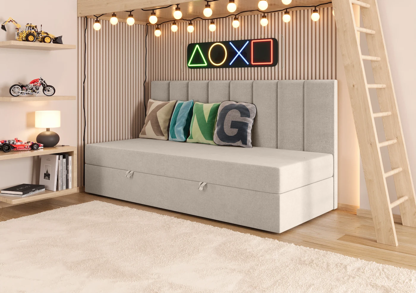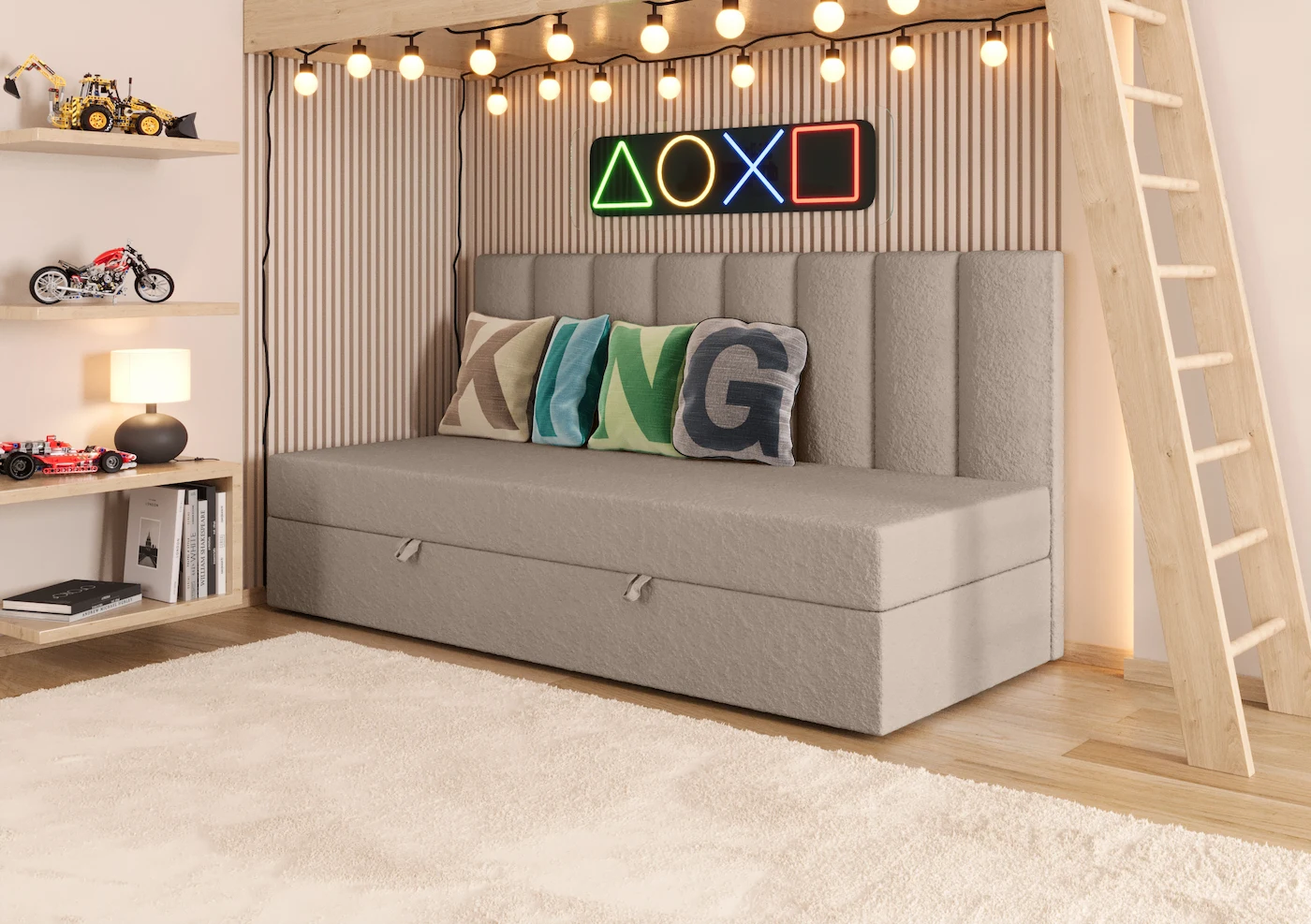 Szukasz stylowego i praktycznego łóżka, które wpasuje się w młodzieżowy wystrój pokoju? Łóżko młodzieżowe Oskar 90x200 to doskonały wybór! Dzięki eleganckiemu beżowemu obiciu wprowadza ciepło i przytulność, idealnie komponując się z każdym wnętrzem. Łóżko Oskar łączy nowoczesny design z funkcjonalnością, dlatego doskonale sprawdzi się jako komfortowe miejsce zarówno do snu, jak i codziennego relaksu.
