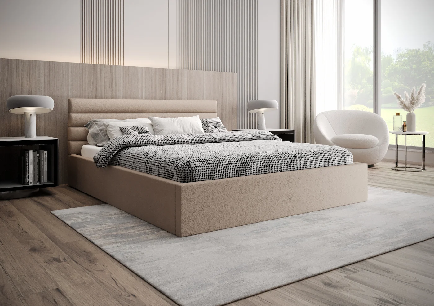 Panelowy zagłówek łóżka Celine to prawdziwe dzieło sztuki – starannie wykonany z wysokiej jakości materiałów, łączy w sobie wyrafinowanie i praktyczność. Jego estetyczna forma nie tylko podkreśla styl wnętrza, ale również zapewnia wygodne oparcie podczas wieczornego odpoczynku, czytania książki czy oglądania telewizji.