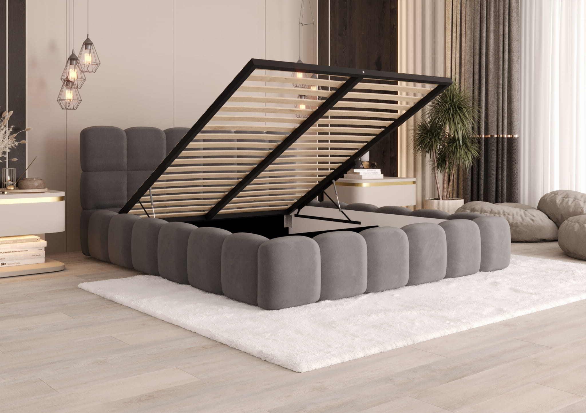 Łóżko FIONA to synonim luksusu i funkcjonalności, które spełni wszystkie Twoje oczekiwania. Jego wielopanelowy design to nie tylko estetyka, ale także solidność i wygoda, które podnoszą komfort użytkowania.