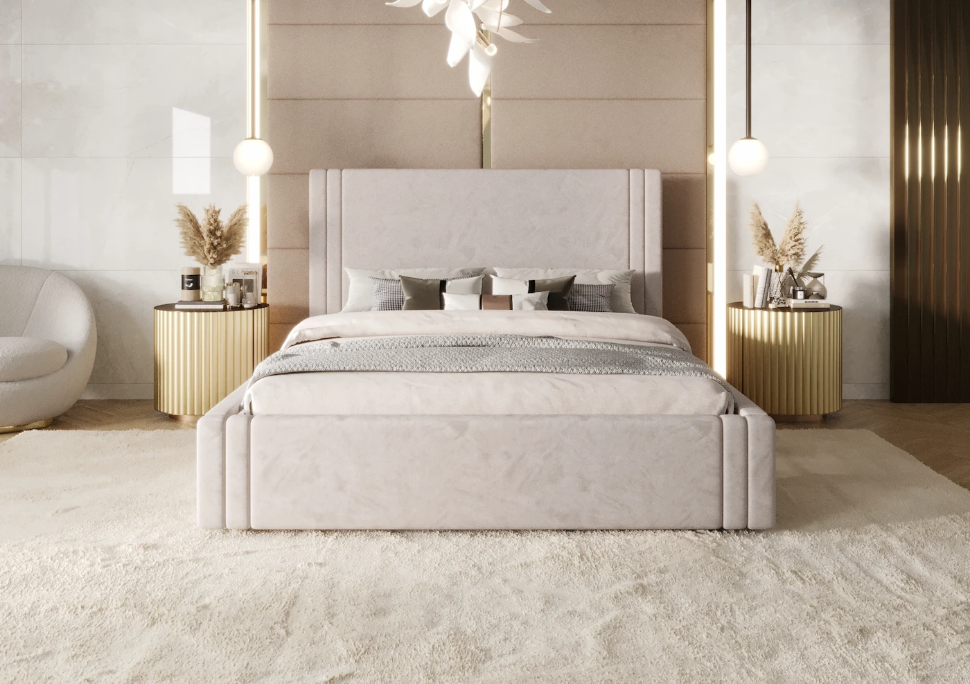 To łóżko to synonim luksusu w subtelnej odsłonie – eleganckie, a jednocześnie niezwykle komfortowe. Idealnie sprawdzi się zarówno w klasycznych, jak i nowoczesnych aranżacjach sypialni.