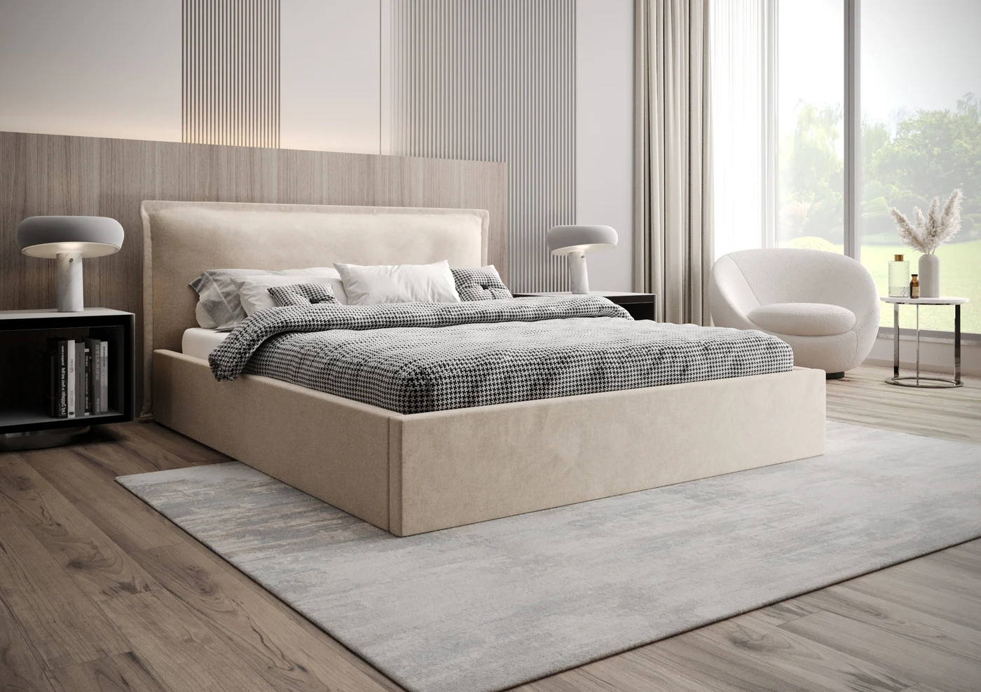Łóżko tapicerowane 120x200 LEXI beżowe z pojemnikiem i stelażem