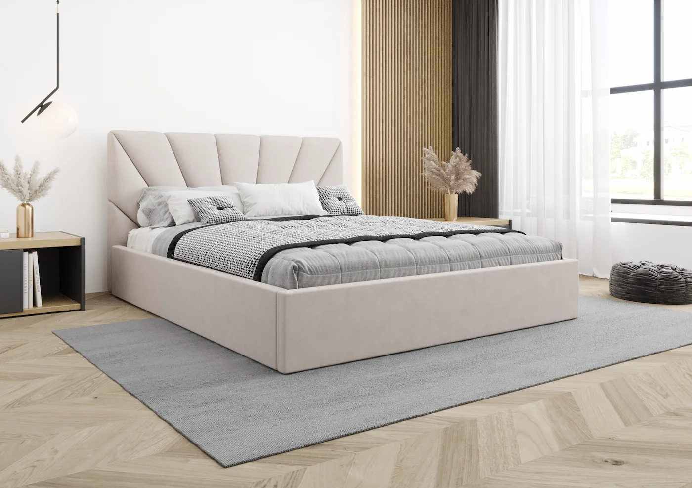 Najbardziej charakterystycznym elementem łóżka Luisa jest jego nietypowy, wielopanelowy zagłówek, który stanowi niepowtarzalny akcent w każdej aranżacji wnętrza. Ręczne wykonanie zagłówka podkreśla jego unikalność, a jego staranne wykończenie dodaje sypialni elegancji i wyjątkowego charakteru. Zagłówek oferuje również wygodne podparcie, idealne do relaksu z książką czy oglądania ulubionych seriali.