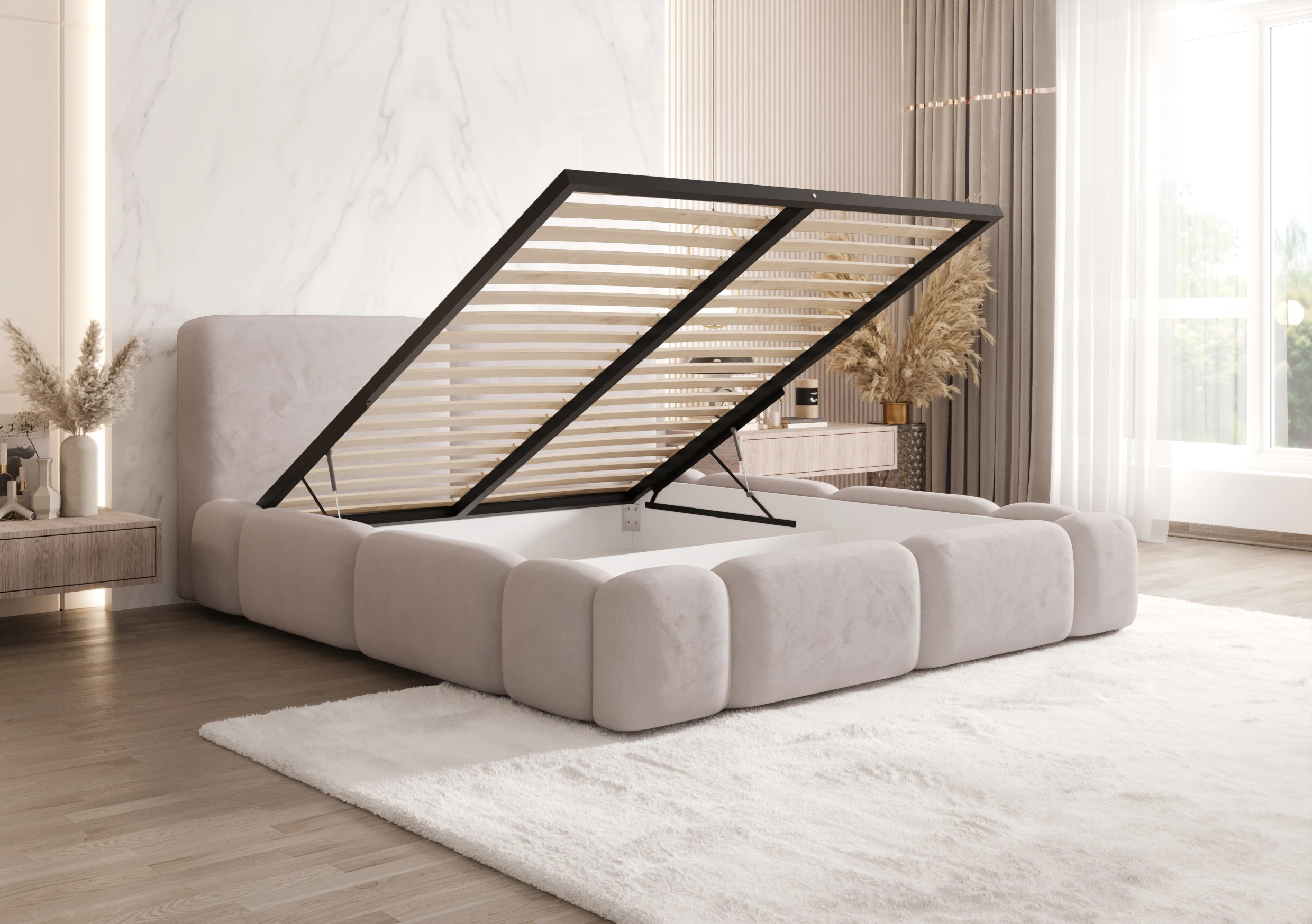 Dzięki wbudowanemu pojemnikowi na pościel zyskujesz praktyczne miejsce do przechowywania, które pozwoli Ci zachować porządek w sypialni. Co więcej, łóżko Mitto możesz skonfigurować dokładnie tak, jak chcesz – dopasowując stelaż, tkaninę czy kolor do własnych potrzeb i stylu wnętrza.