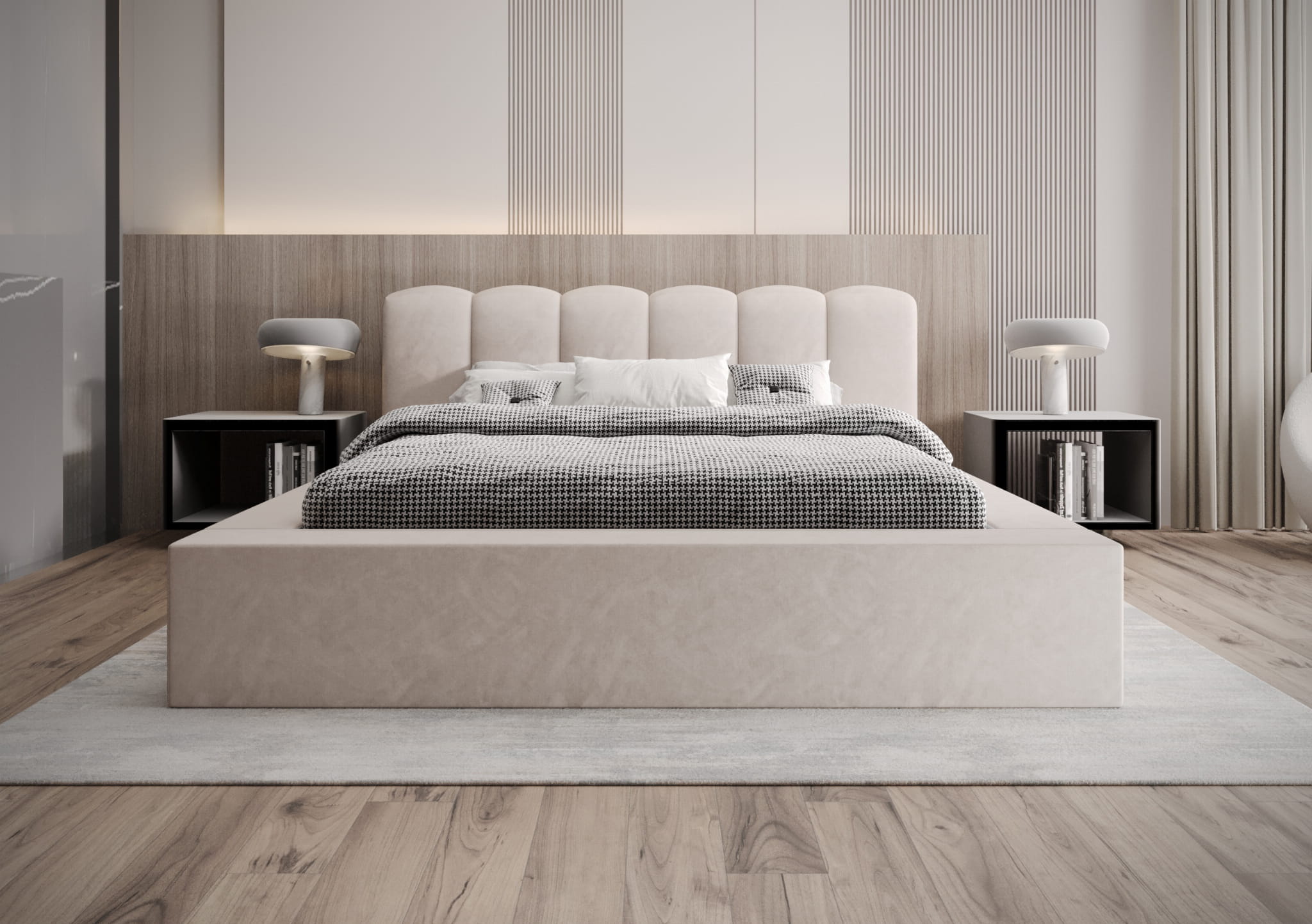 Cechą charakterystyczną łóżka VELO jest wielopanelowe zagłowie, które jest ręcznie tapicerowane. Ta ekskluzywna tkanina charakteryzuje się wyjątkową miękkością i eleganckim wyglądem, który podkreśla nowoczesny, a zarazem wyrafinowany styl. Precyzja wykonania i dbałość o każdy szczegół sprawiają, że VELO to produkt na najwyższym poziomie, stworzony z myślą o najbardziej wymagających klientach.