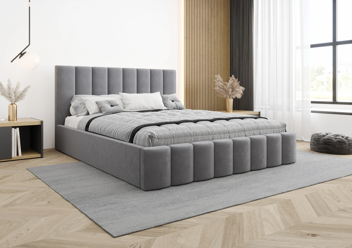 Łóżko Aria to perfekcyjne połączenie nowoczesnego stylu i komfortu. Wykonane z wysokiej jakości tkaniny welurowej Dream Velvet, która nadaje mu aksamitnej miękkości i subtelnego blasku. Ręczne tapicerowanie wielopanelowego zagłówka oraz przodu łóżka podkreśla staranność wykonania i nadaje meblowi unikalnego charakteru. Dzięki tak dopracowanemu designowi, łóżko stanie się centralnym punktem Twojej sypialni.