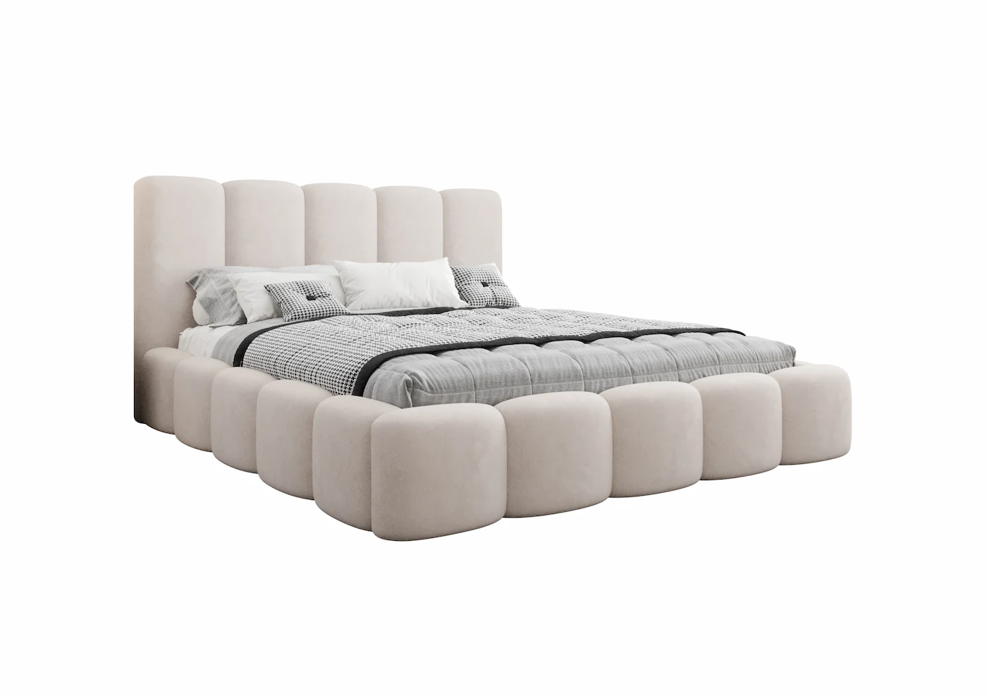 Łóżko tapicerowane 140x200 BILLIE z pojemnikiem i stelażem beżowe welurowe, kolor do wyboru