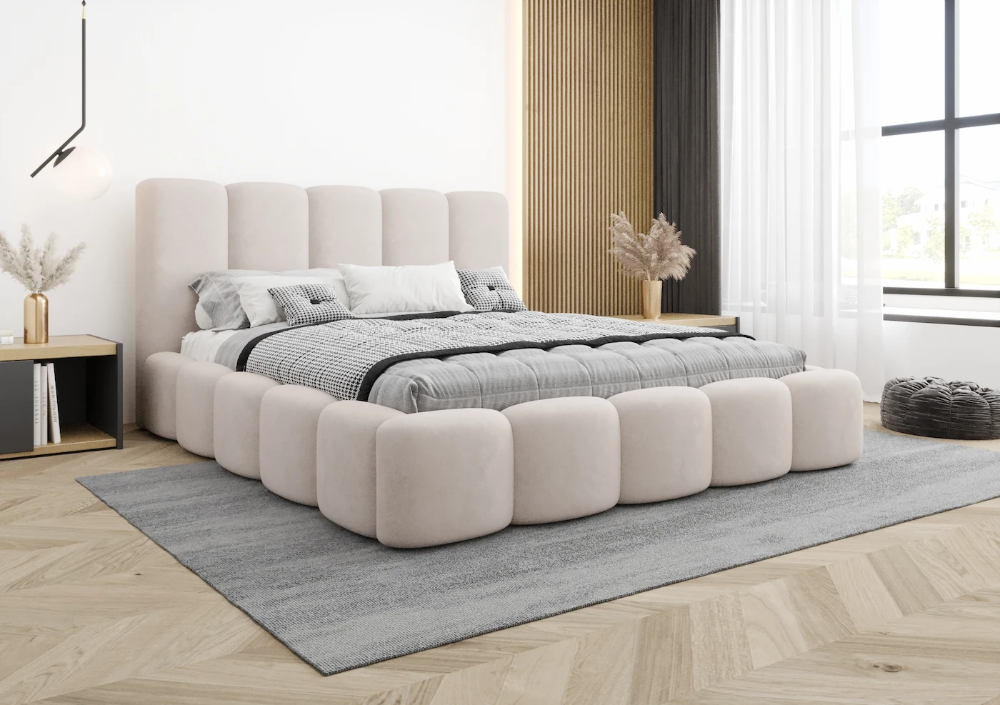 Najbardziej charakterystycznym elementem łóżka Billie są wysokie panele tapicerowane, które zdobią zarówno zagłówek, jak i boki oraz przód łóżka. Każdy panel został wykonany ręcznie, co gwarantuje unikalność każdego egzemplarza i dodaje całości niepowtarzalnego uroku. Wysokie panele tworzą wrażenie przestrzeni i podkreślają luksusowy charakter łóżka, jednocześnie zapewniając wygodne oparcie podczas odpoczynku czy czytania książki.