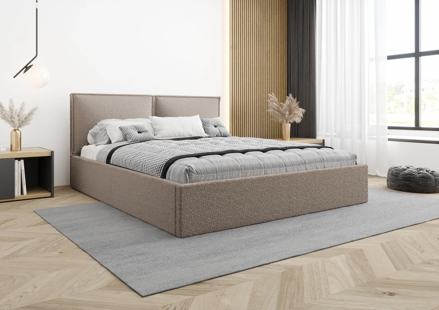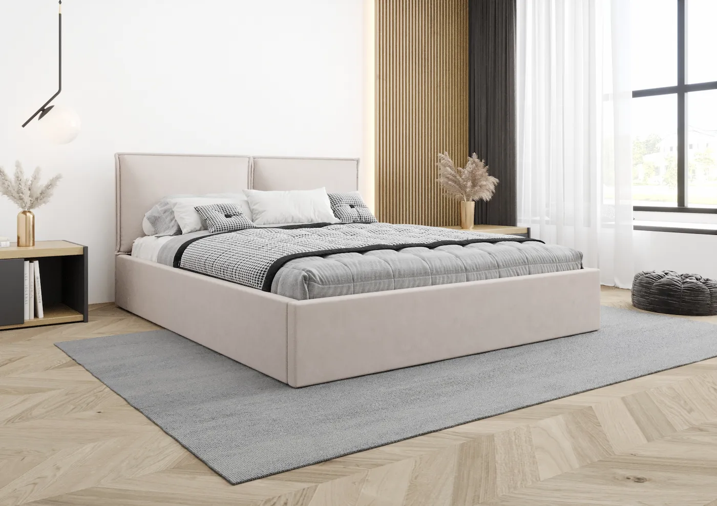 Łóżko Dalia to starannie ręcznie wykonany mebel, stworzony z dbałością o każdy szczegół. Tapicerowany zagłówek w formie dwóch ręcznie szytych poduch zapewnia wyjątkową wygodę. To idealne oparcie podczas wieczornego relaksu – czytania książki czy oglądania ulubionego serialu. Unikalny design zagłówka sprawia, że łóżko staje się stylowym elementem każdej sypialni.