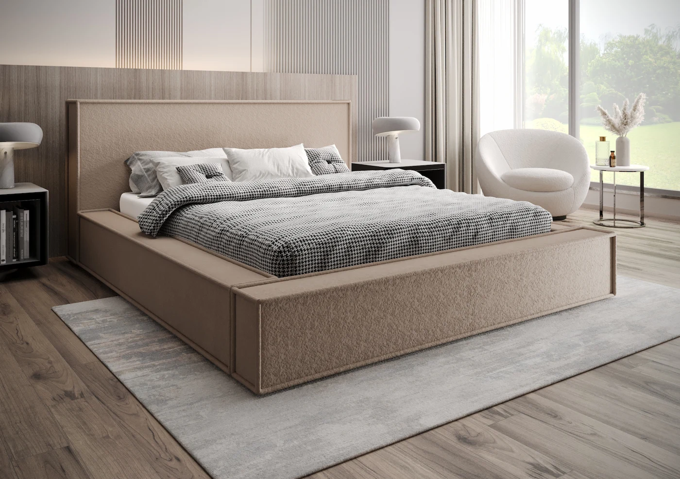 Cechą charakterystyczną łóżka Fondi jest ręcznie wykonane obszycie na każdym rogu, które dodaje mu unikalnego charakteru. Detale te, starannie dopracowane, podkreślają jakość wykonania i nadają łóżku wyjątkowego wykończenia.