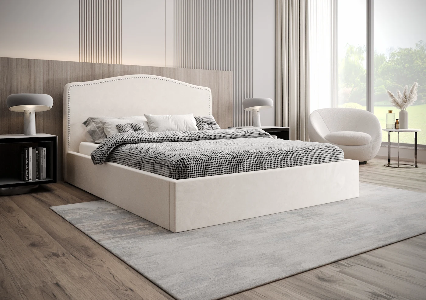 Cechą wyróżniającą łóżko Freya jest jego interesujący zagłówek, który przyciąga wzrok unikalnym kształtem. Każdy detal został starannie przemyślany – zagłówek został tapicerowany ręcznie, co zapewnia najwyższą jakość wykonania i niepowtarzalność każdego egzemplarza. Dodatkowym akcentem są subtelne, dekoracyjne wykończenia, które dodają zagłówkowi wyrafinowanego charakteru i podkreślają niezwykły styl mebla.