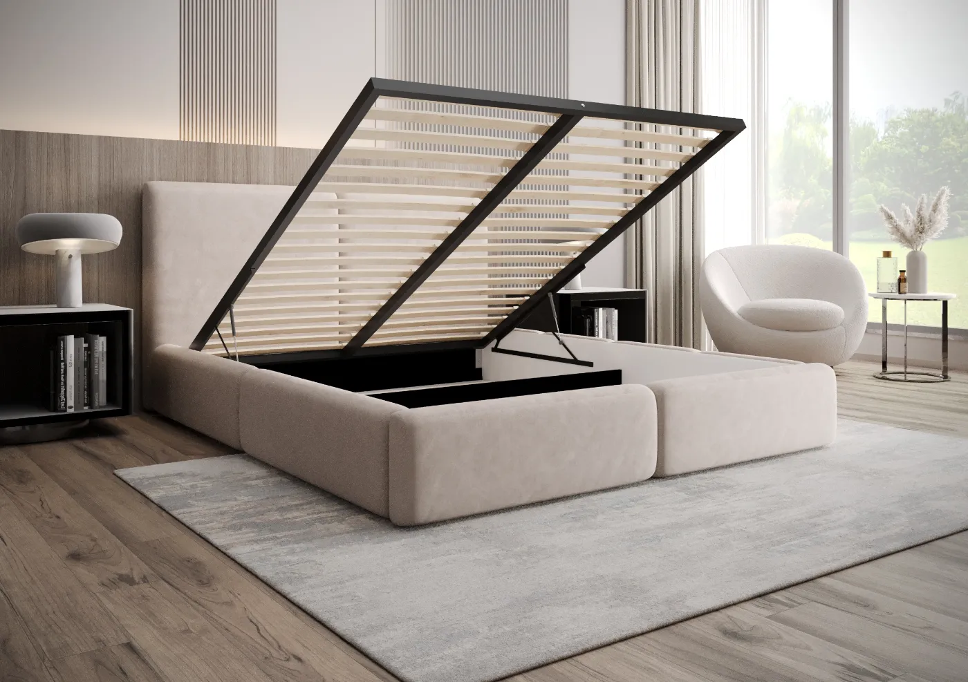 Łóżko Nilo 140x200 Beżowe z Pojemnikiem - Idealne do Twojej Sypialni