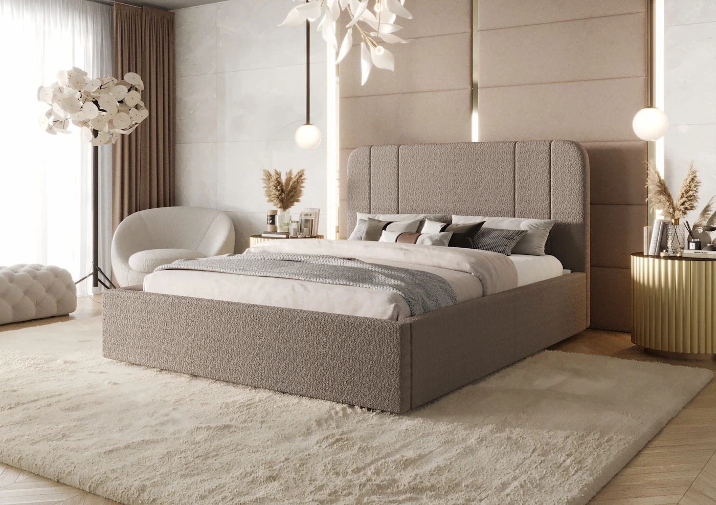 Każde łóżko Rita może być wykonane w tkaninie wybranej przez klienta, co umożliwia idealne dopasowanie do aranżacji sypialni.