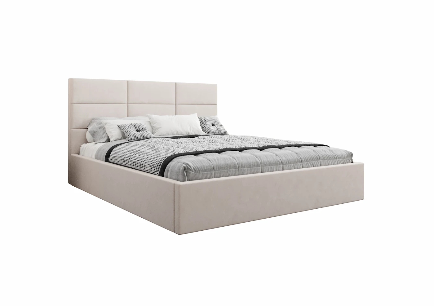 - Zagłówek: Dziewięciopanelowy, tapicerowany