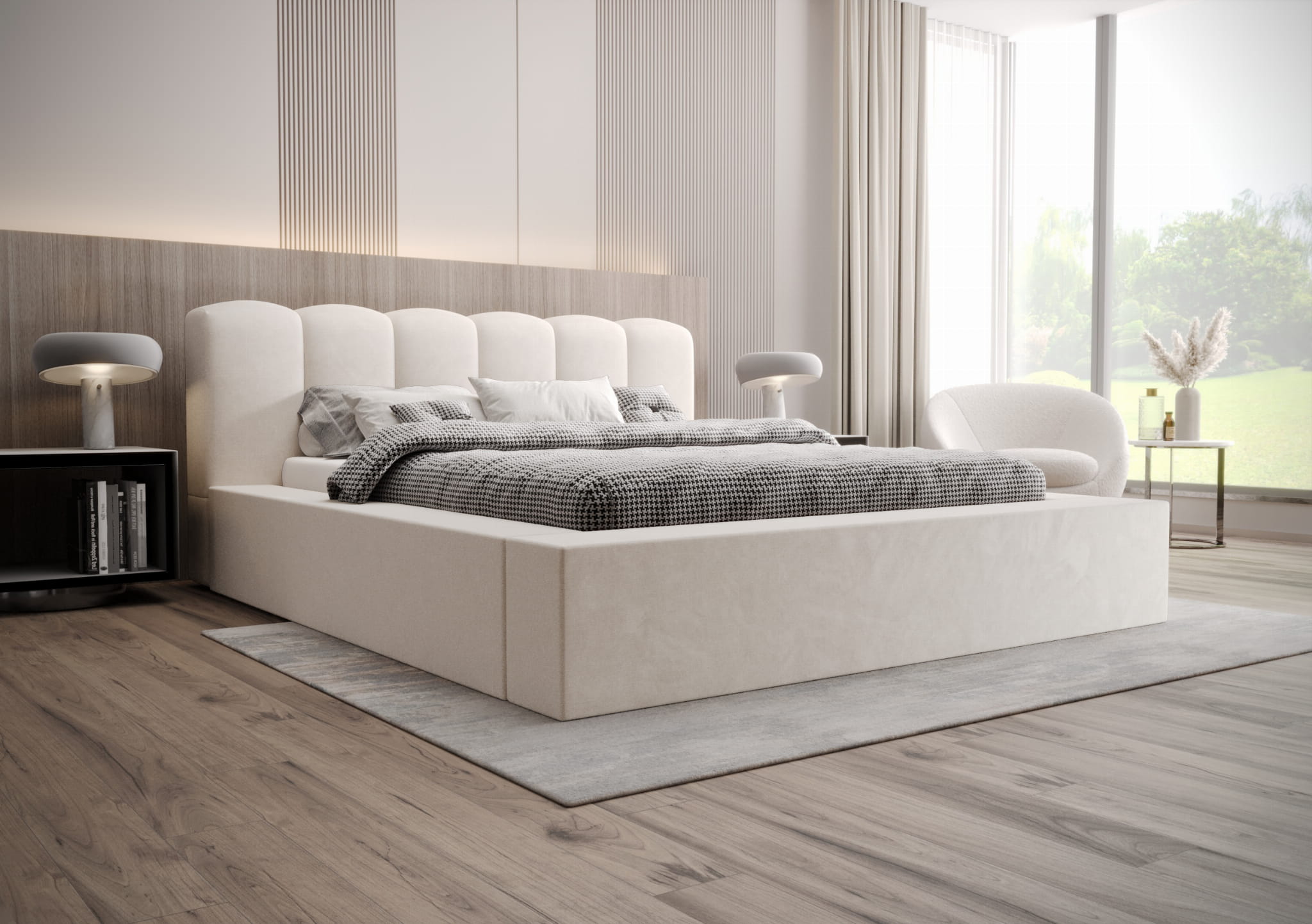 Cechą charakterystyczną łóżka VELO jest wielopanelowe zagłowie, które jest ręcznie tapicerowane. Ta ekskluzywna tkanina charakteryzuje się wyjątkową miękkością i eleganckim wyglądem, który podkreśla nowoczesny, a zarazem wyrafinowany styl. Precyzja wykonania i dbałość o każdy szczegół sprawiają, że VELO to produkt na najwyższym poziomie, stworzony z myślą o najbardziej wymagających klientach.