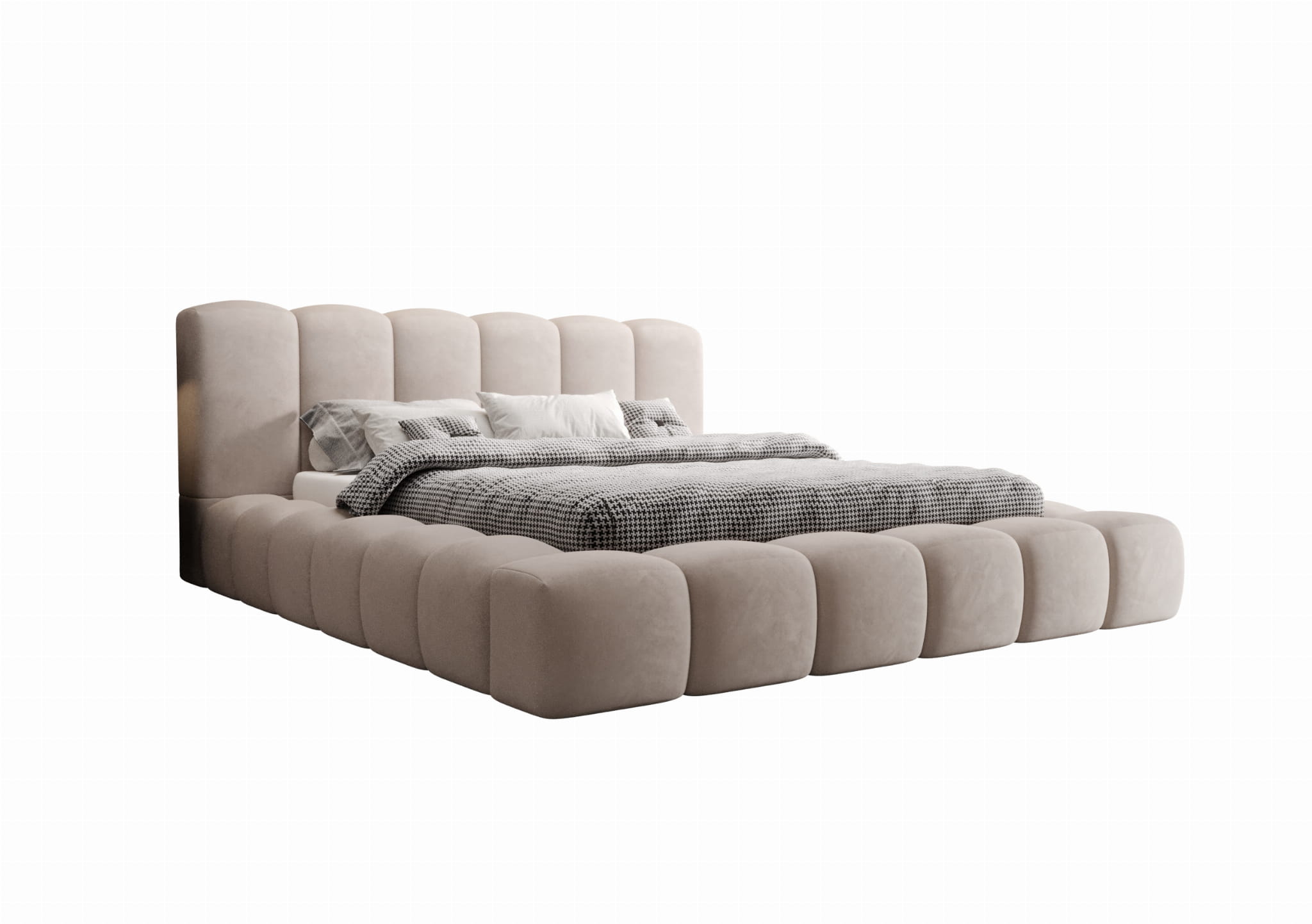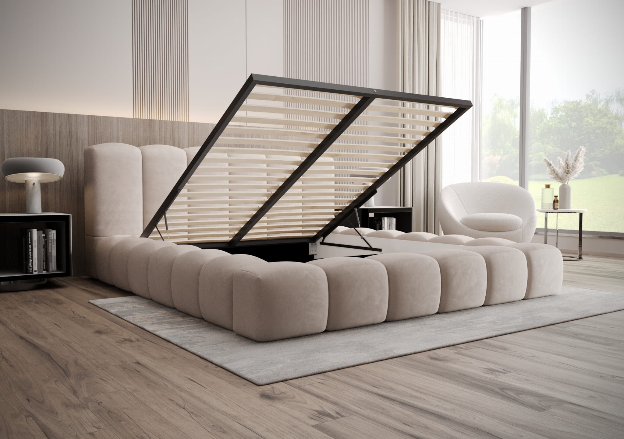 Łóżko tapicerowane 160x200 IRIS z pojemnikiem i stelażem beżowe tkanina welurowa