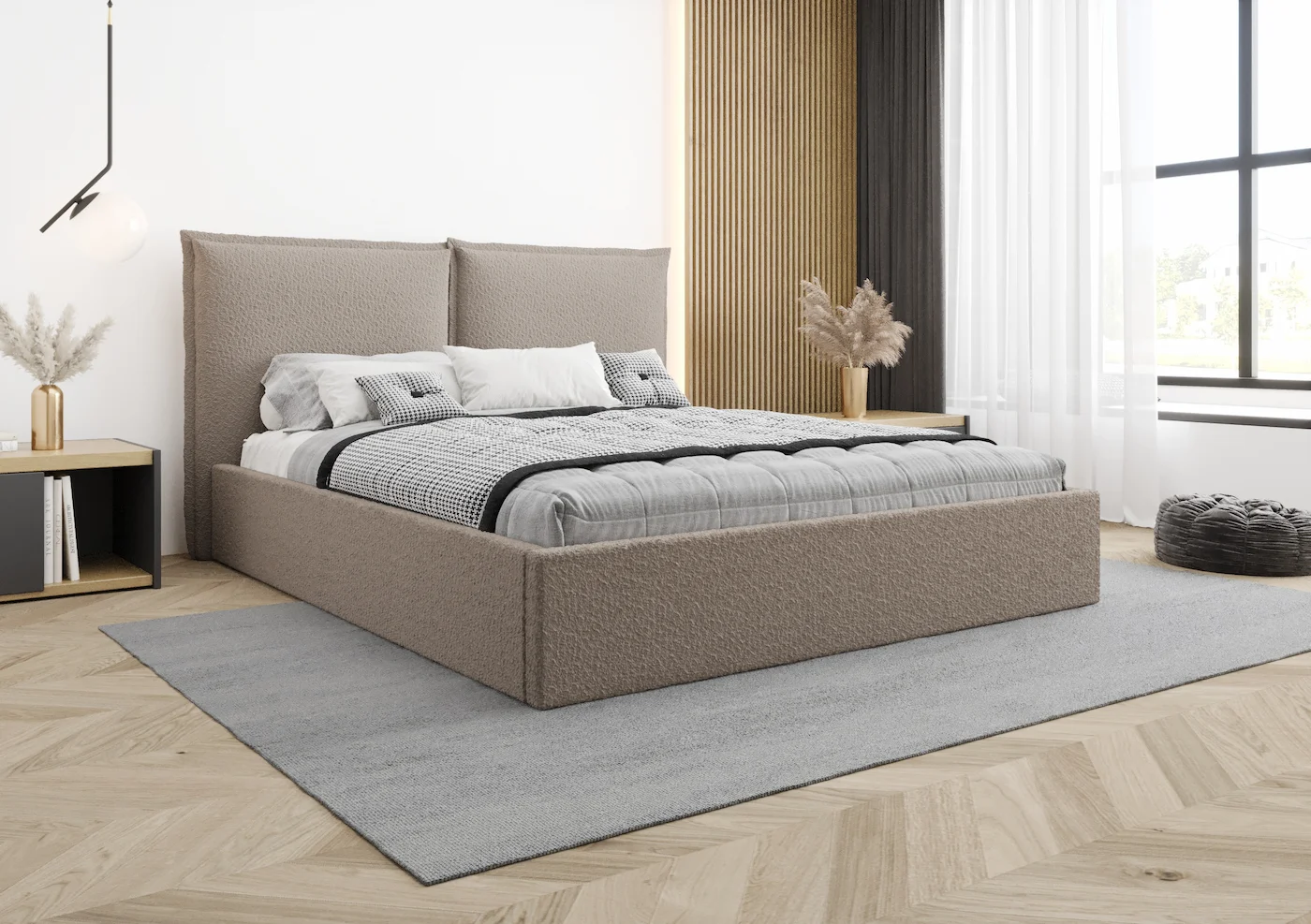 Łóżko Bonnie wyróżnia się wygodnymi, dużymi poduszkami, które nie tylko dodają charakteru, ale także zapewniają doskonałe wsparcie podczas czytania, oglądania telewizji czy chwili relaksu. Każdy detal został starannie dopracowany, co czyni łóżko stylowym akcentem w aranżacji każdej sypialni.