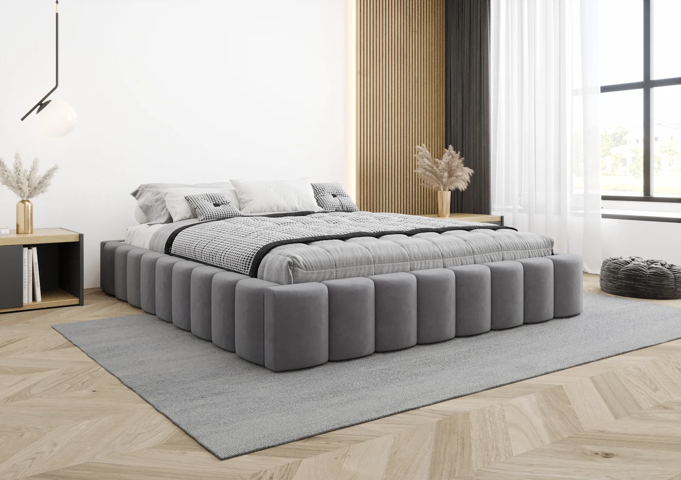 Model Candy wyróżniają wielopanelowe boki, które zostały ręcznie tapicerowane z każdej strony, tworząc elegancką i spójną całość. Dzięki temu łóżko prezentuje się estetycznie i nowocześnie, jednocześnie zapewniając wytrzymałość i komfort użytkowania.