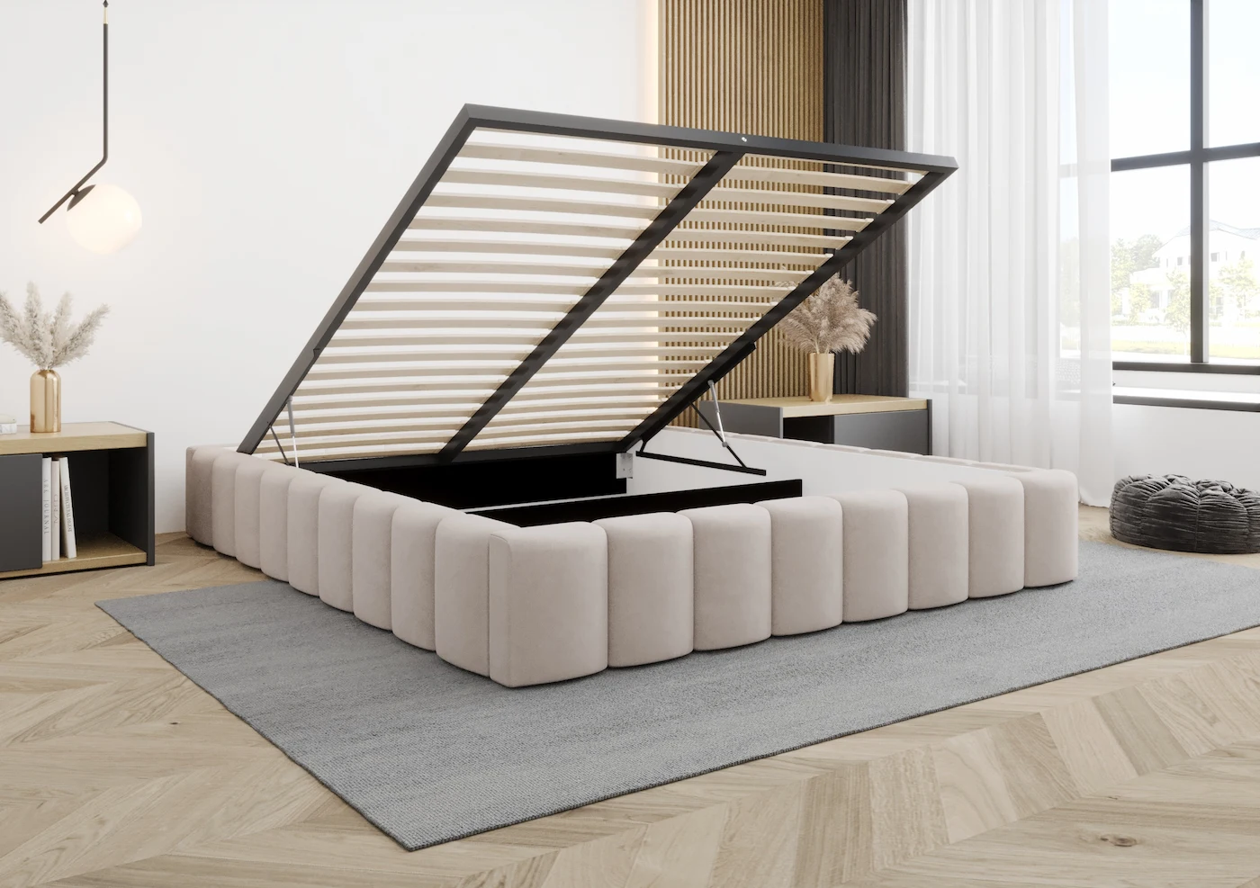 Łóżko tapicerowane 180x200 CANDY z pojemnikiem i stelażem beżowe tkanina welurowa
