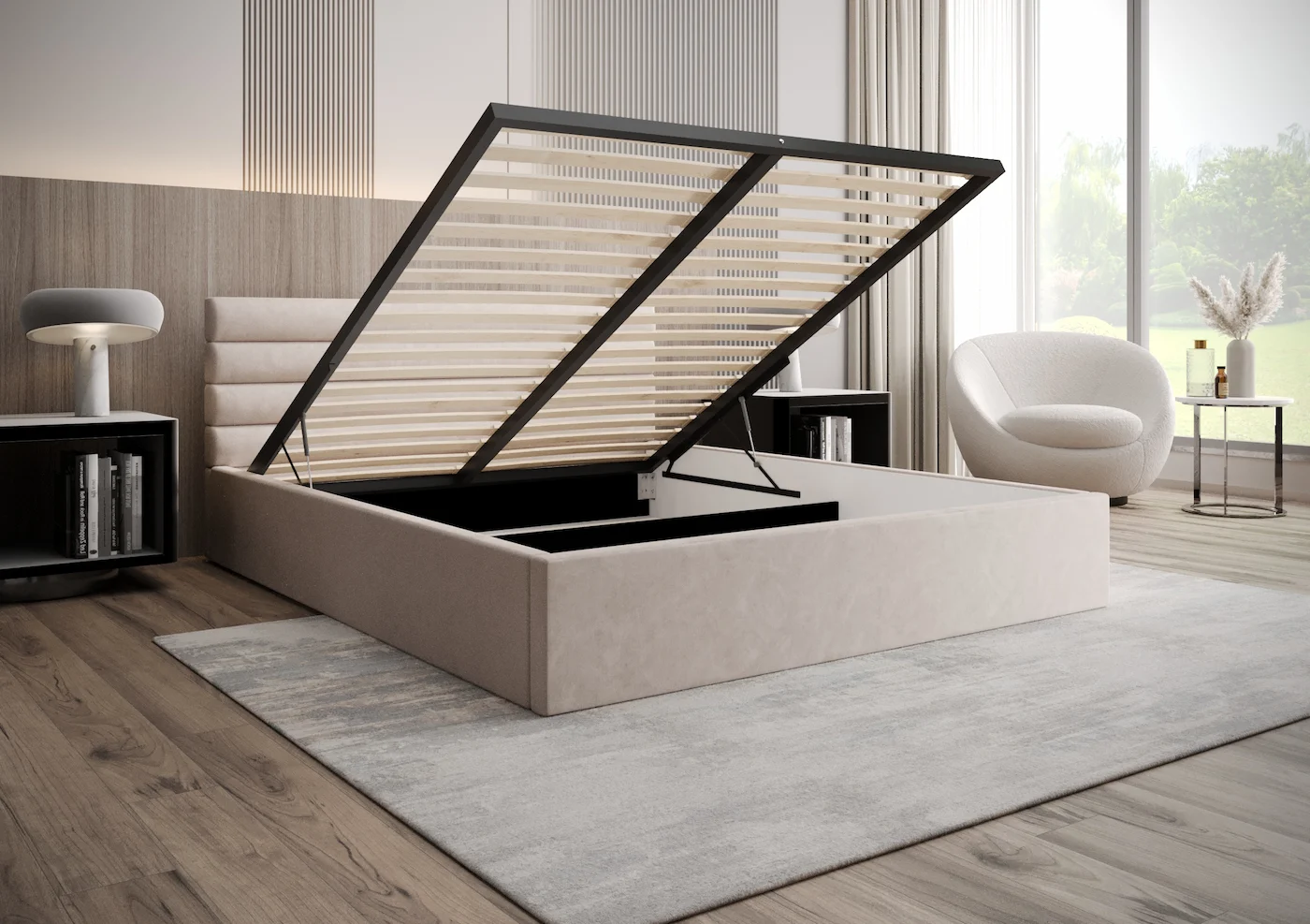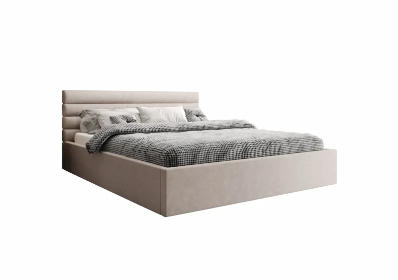 Łóżko tapicerowane 180x200 CELINE z pojemnikiem i stelażem beżowe z pojemnikiem i stelażem