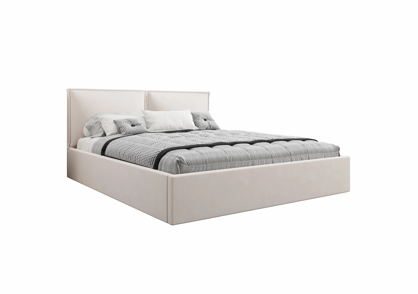 Łóżko zostało wyposażone w praktyczny pojemnik na pościel, który pomoże utrzymać porządek i maksymalnie wykorzystać przestrzeń. Możesz także dopasować stelaż do swoich potrzeb, wybierając pomiędzy metalowym a drewnianym, co gwarantuje trwałość i komfort użytkowania przez długie lata.