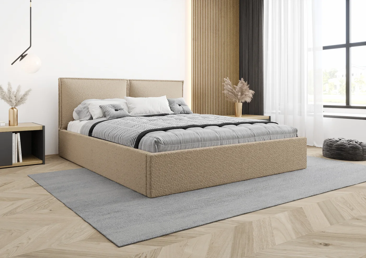 Łóżko Dalia to starannie ręcznie wykonany mebel, stworzony z dbałością o każdy szczegół. Tapicerowany zagłówek w formie dwóch ręcznie szytych poduch zapewnia wyjątkową wygodę. To idealne oparcie podczas wieczornego relaksu – czytania książki czy oglądania ulubionego serialu. Unikalny design zagłówka sprawia, że łóżko staje się stylowym elementem każdej sypialni.