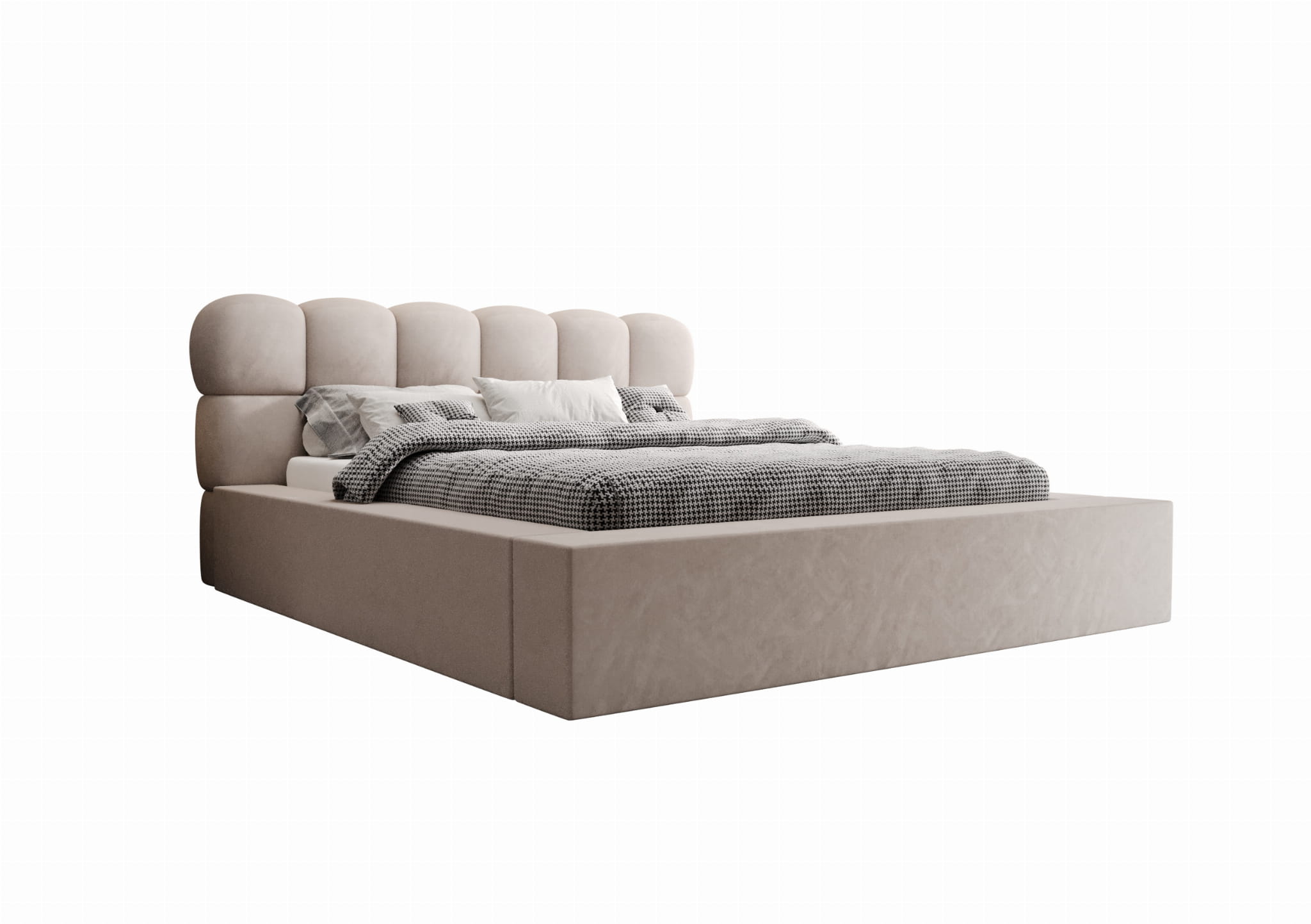Łóżko tapicerowane 180x200 ESMÉ z pojemnikiem i stelażem beżowe tkanina welurowa