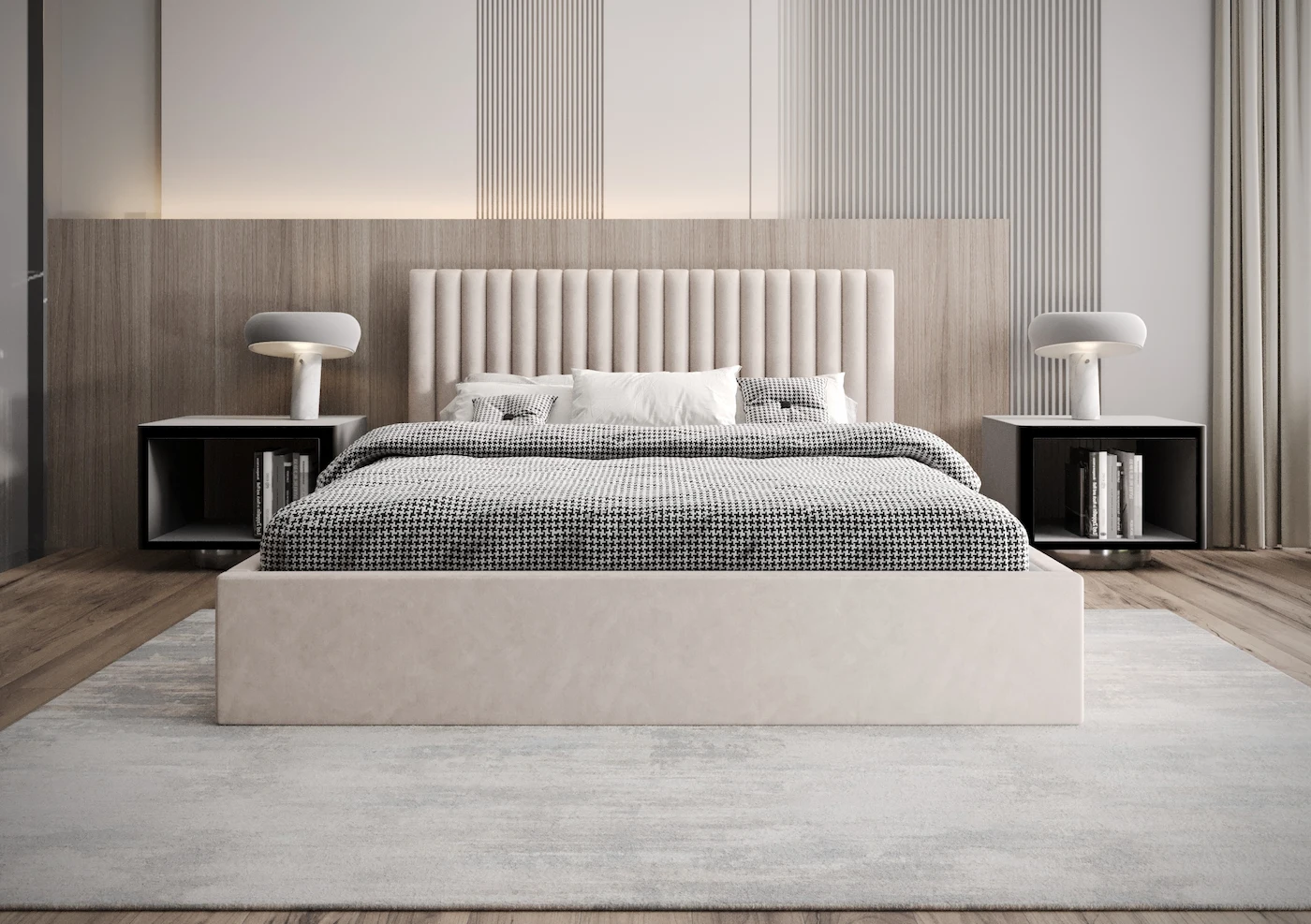 - Zagłówek: Panelowy, tapicerowany, ręcznie wykonany