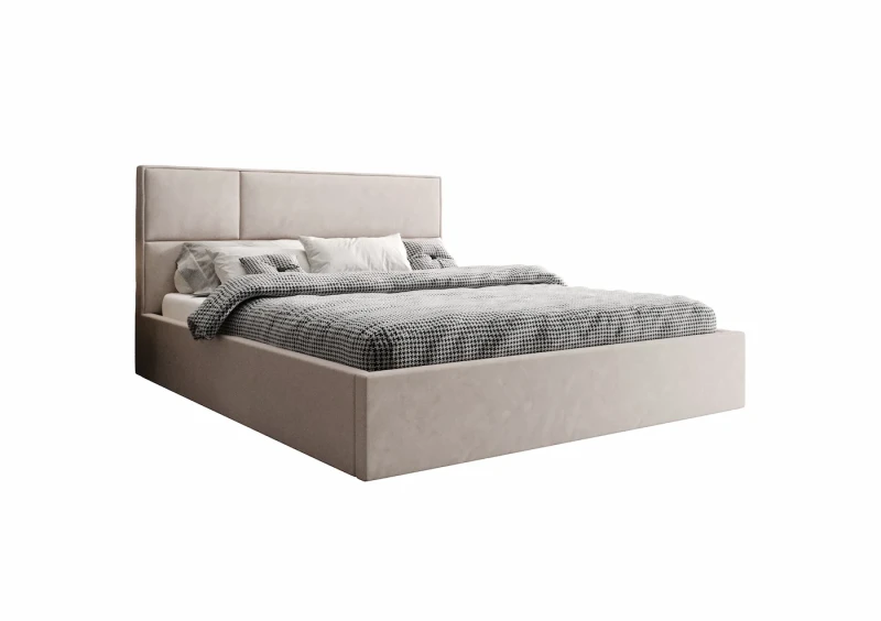 Łóżko tapicerowane 180x200 SELENA z pojemnikiem i stelażem beżowe tkanina welurowa