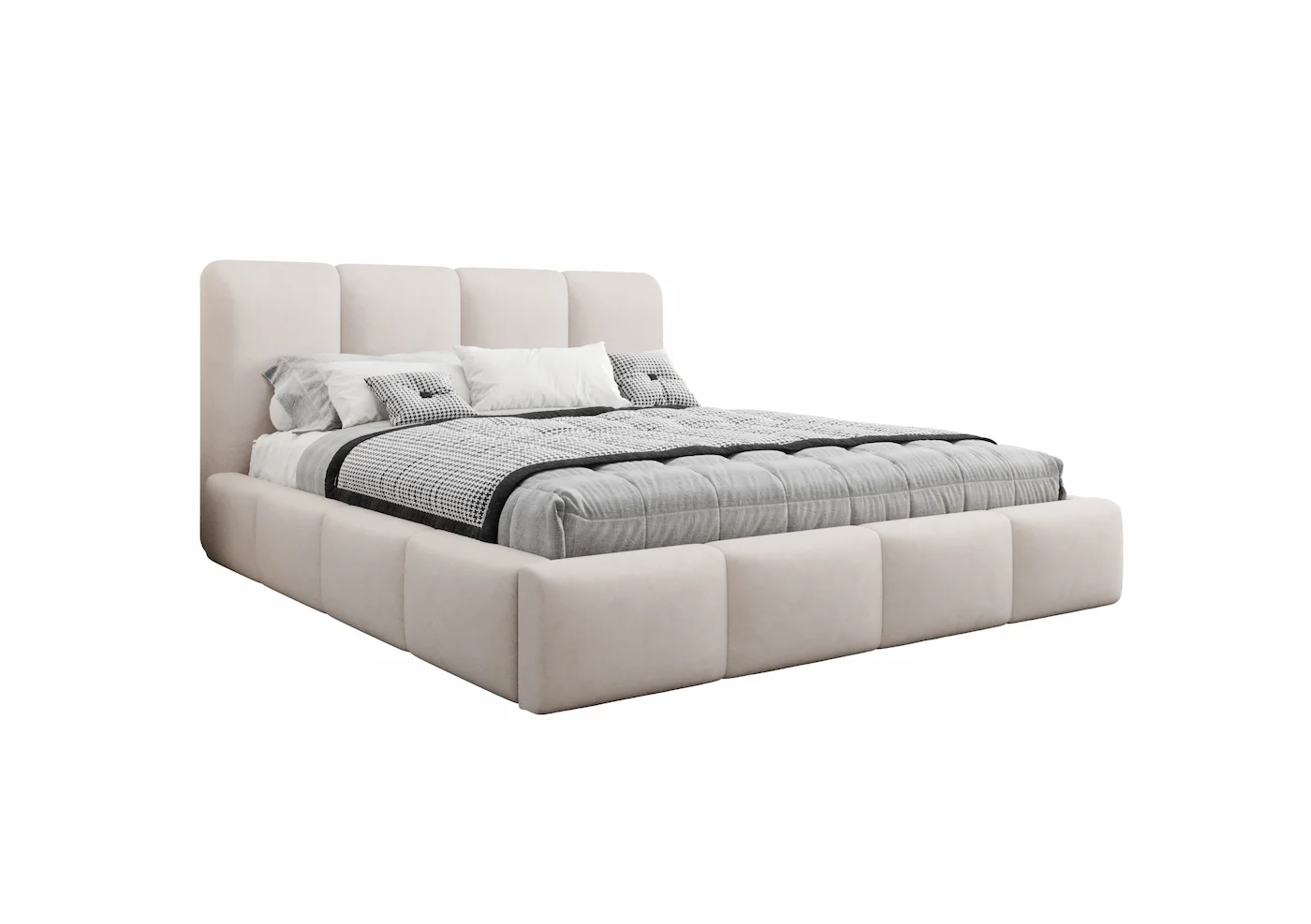 Łóżko tapicerowane 200x200 ANGEL z pojemnikiem i stelażem beżowe tkanina welurowa
