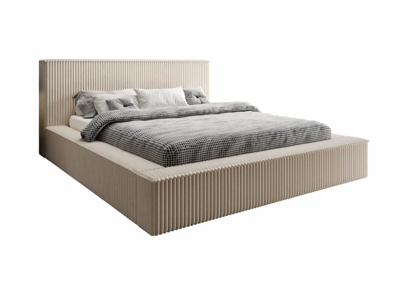 Łóżko tapicerowane 200x200 BETI SLIM z pojemnikiem i stelażem beżowe tkanina sztruks