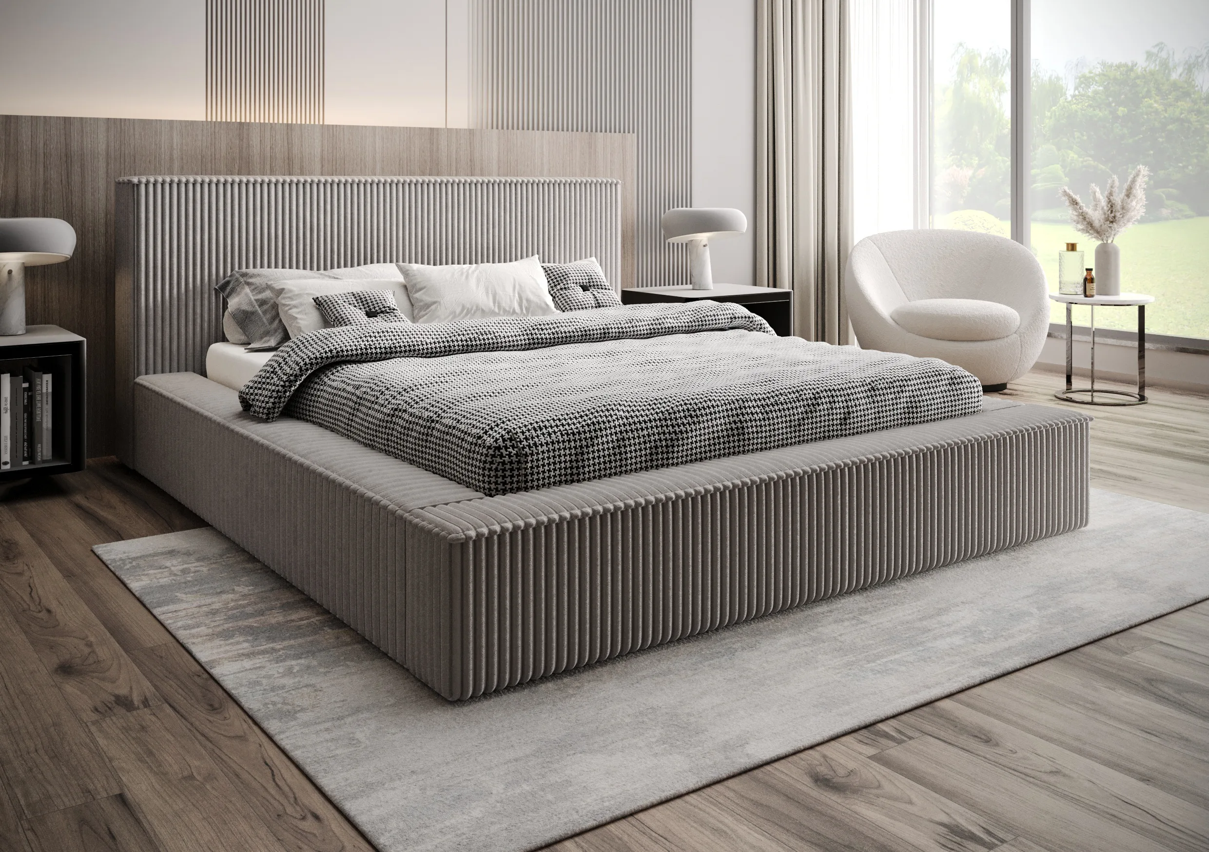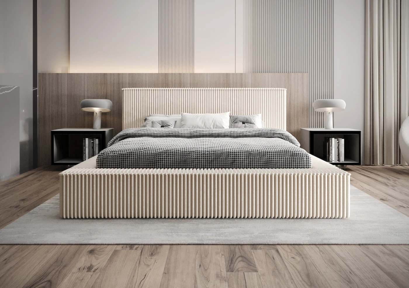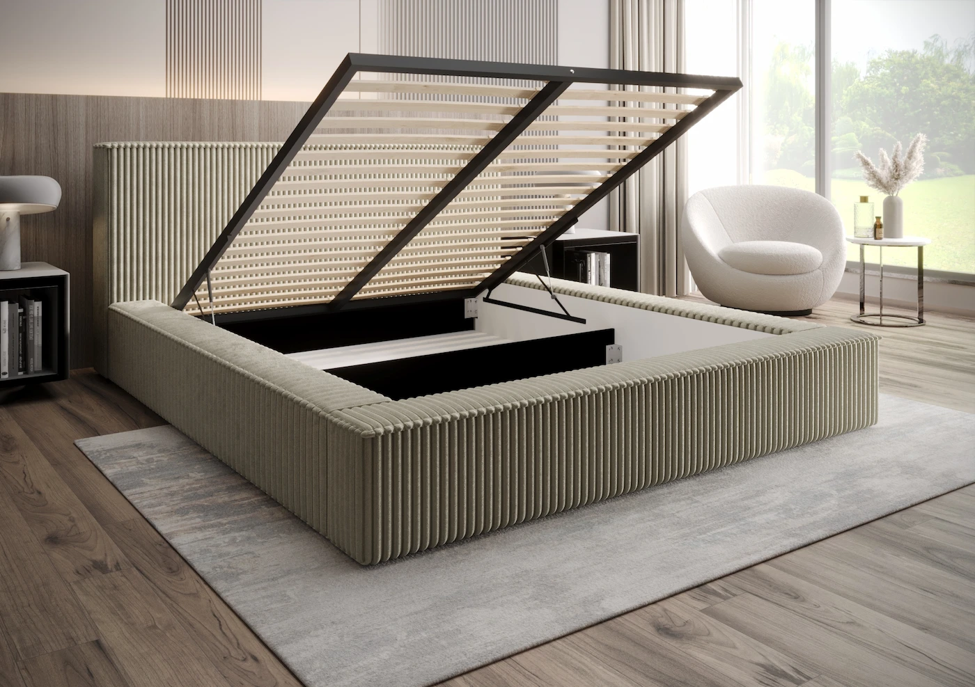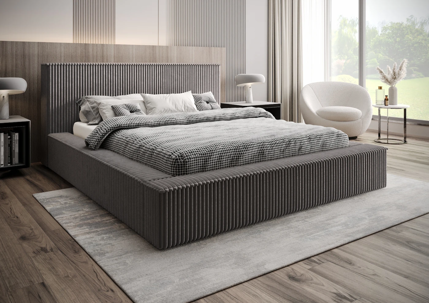 Łóżko Beti Slim to idealne połączenie funkcjonalności, wygody i stylowego designu. Tapicerowane wysokiej jakości grubym sztruksem, który jest nie tylko miękki w dotyku, ale także trwały i odporny na codzienne użytkowanie. Dzięki pojemnikowi na pościel łatwo utrzymasz porządek, co pozwala efektywnie wykorzystać przestrzeń w sypialni.