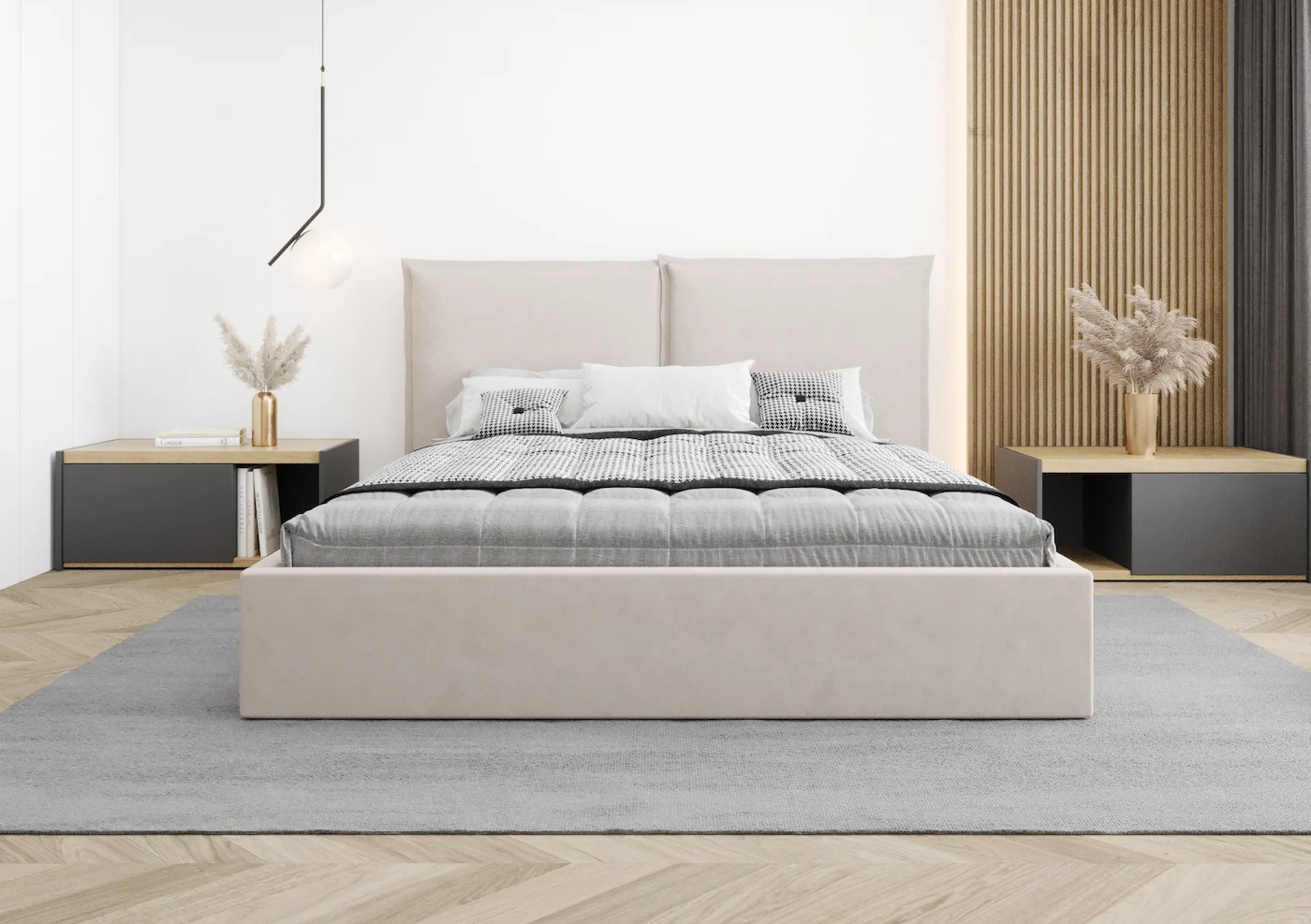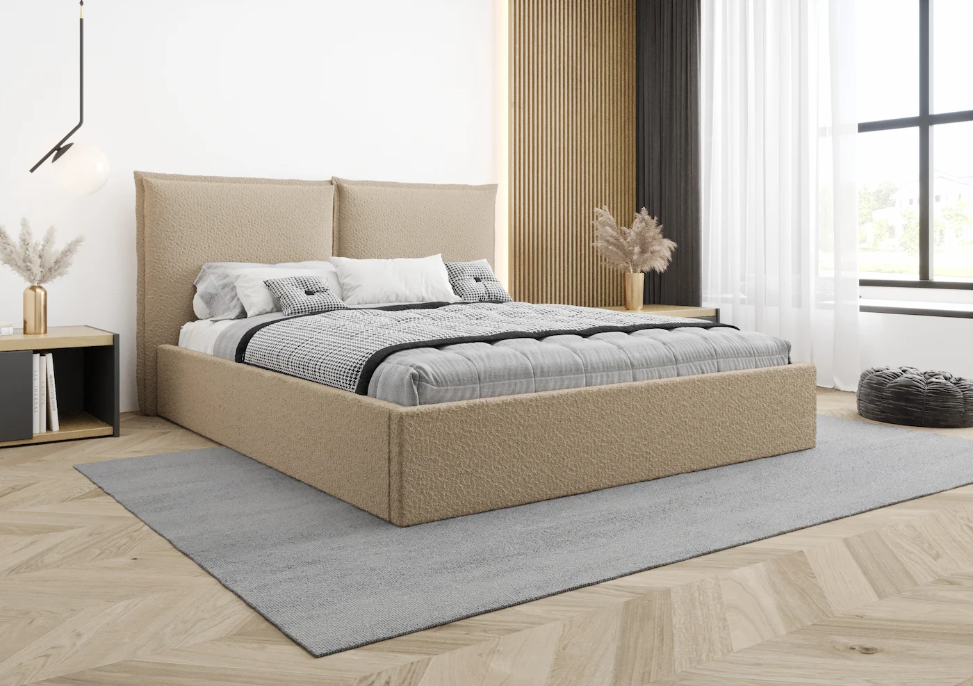 Łóżko Bonnie wyróżnia się wygodnymi, dużymi poduszkami, które nie tylko dodają charakteru, ale także zapewniają doskonałe wsparcie podczas czytania, oglądania telewizji czy chwili relaksu. Każdy detal został starannie dopracowany, co czyni łóżko stylowym akcentem w aranżacji każdej sypialni.