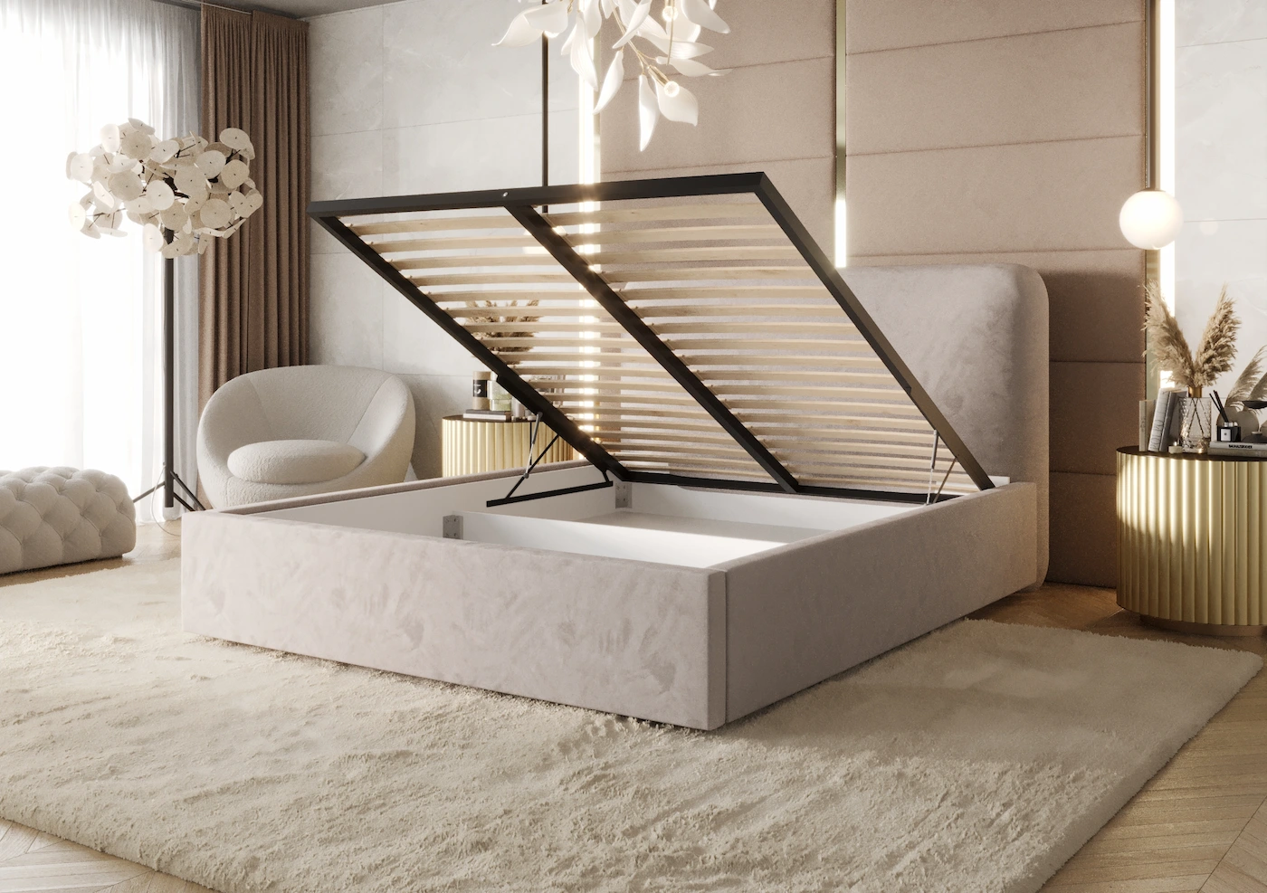 Model Dina wyposażony jest w praktyczny pojemnik na pościel, który pozwala zachować porządek i maksymalnie wykorzystać przestrzeń sypialni.