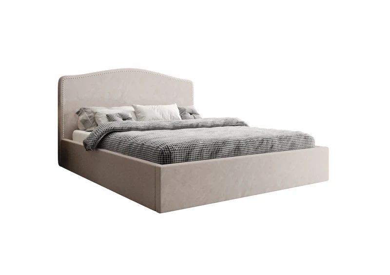 Cechą wyróżniającą łóżko Freya jest jego interesujący zagłówek, który przyciąga wzrok unikalnym kształtem. Każdy detal został starannie przemyślany – zagłówek został tapicerowany ręcznie, co zapewnia najwyższą jakość wykonania i niepowtarzalność każdego egzemplarza. Dodatkowym akcentem są subtelne, dekoracyjne wykończenia, które dodają zagłówkowi wyrafinowanego charakteru i podkreślają niezwykły styl mebla.