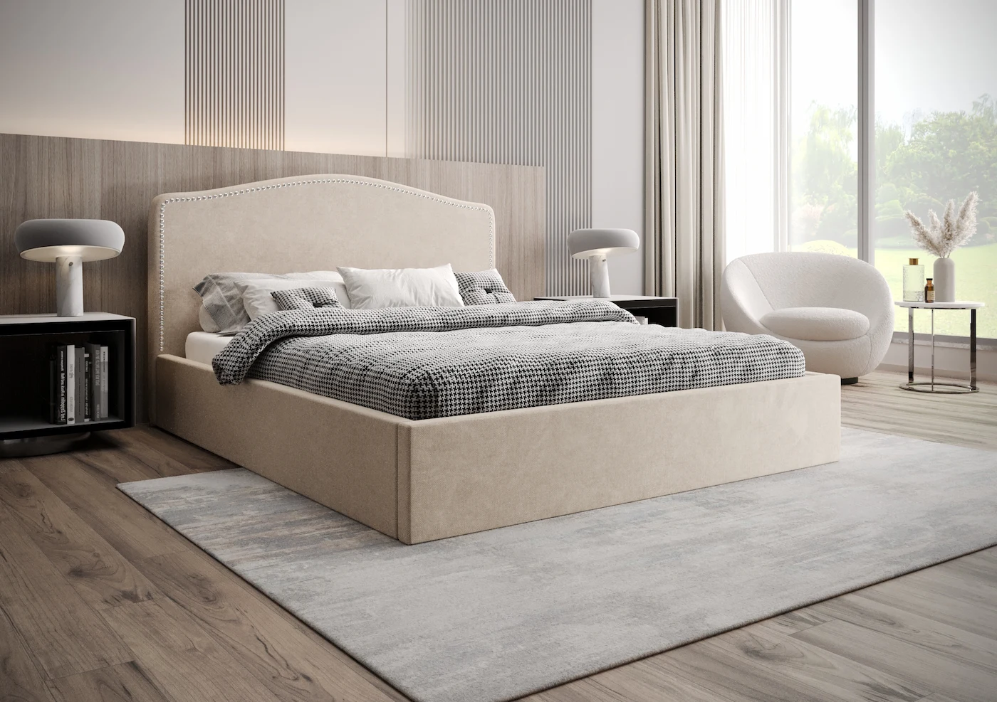 Każde łóżko Freya może być wykonane w tkaninie wybranej przez klienta, co umożliwia idealne dopasowanie do wystroju wnętrza.