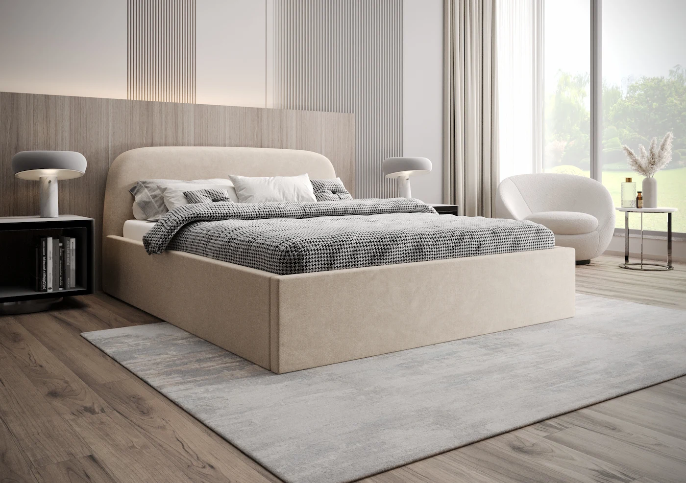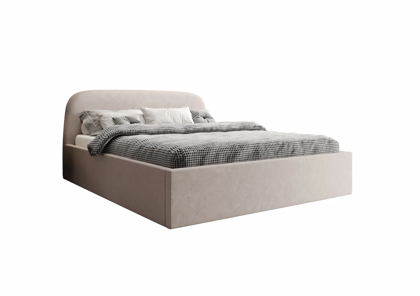 Łóżko tapicerowane 200x200 HARRY z pojemnikiem i stelażem beżowe tkanina welurowa