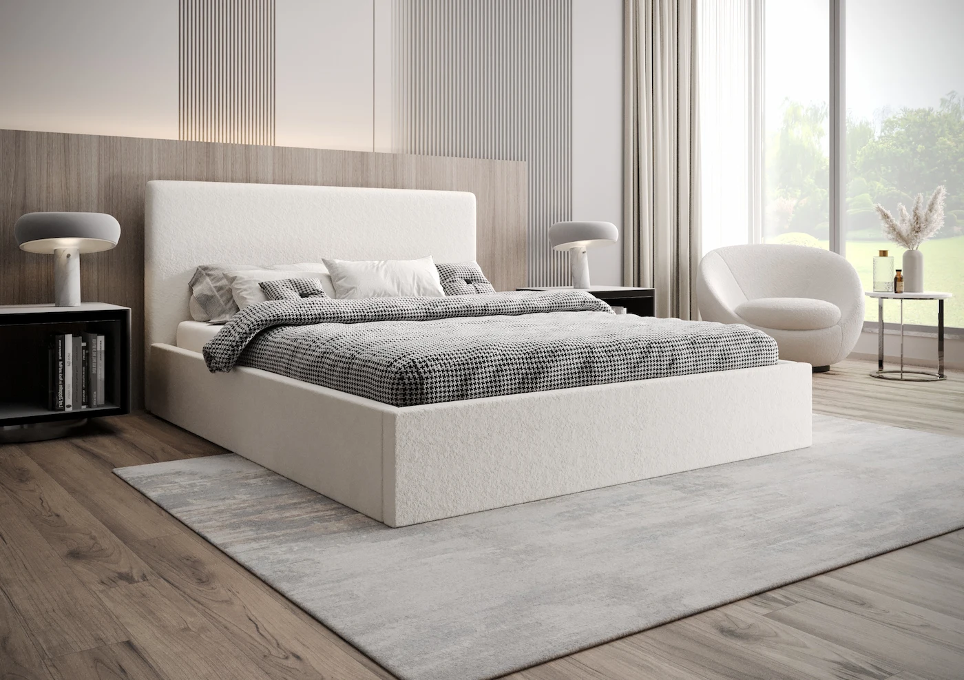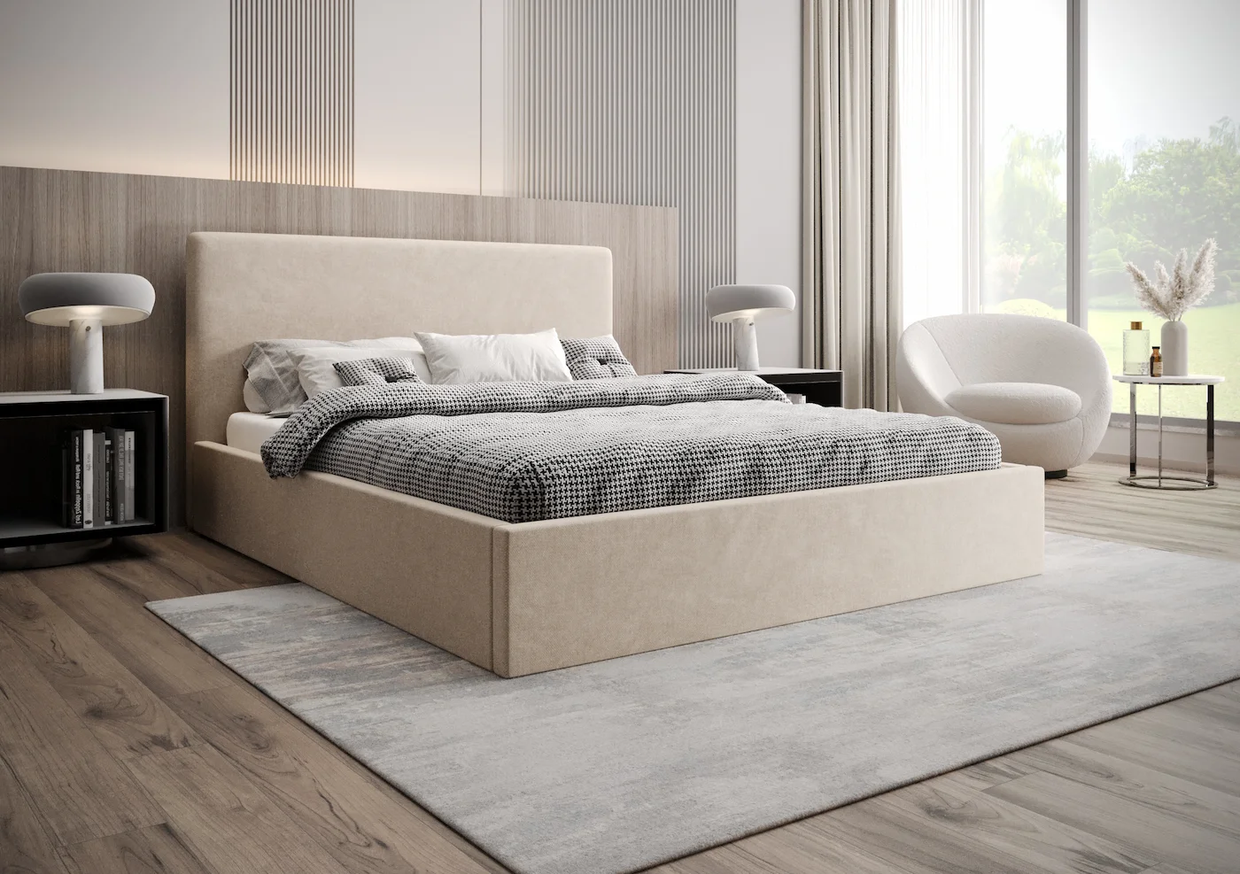 Centralnym elementem łóżka Sona jest tapicerowany zagłówek o miękkim wypełnieniu, starannie obszyty, by podkreślić jego klasyczny i ponadczasowy charakter. Zagłówek nie tylko stanowi subtelną dekorację wnętrza, ale także gwarantuje wygodę podczas wieczornego relaksu – idealne oparcie do czytania książki czy oglądania ulubionego filmu.