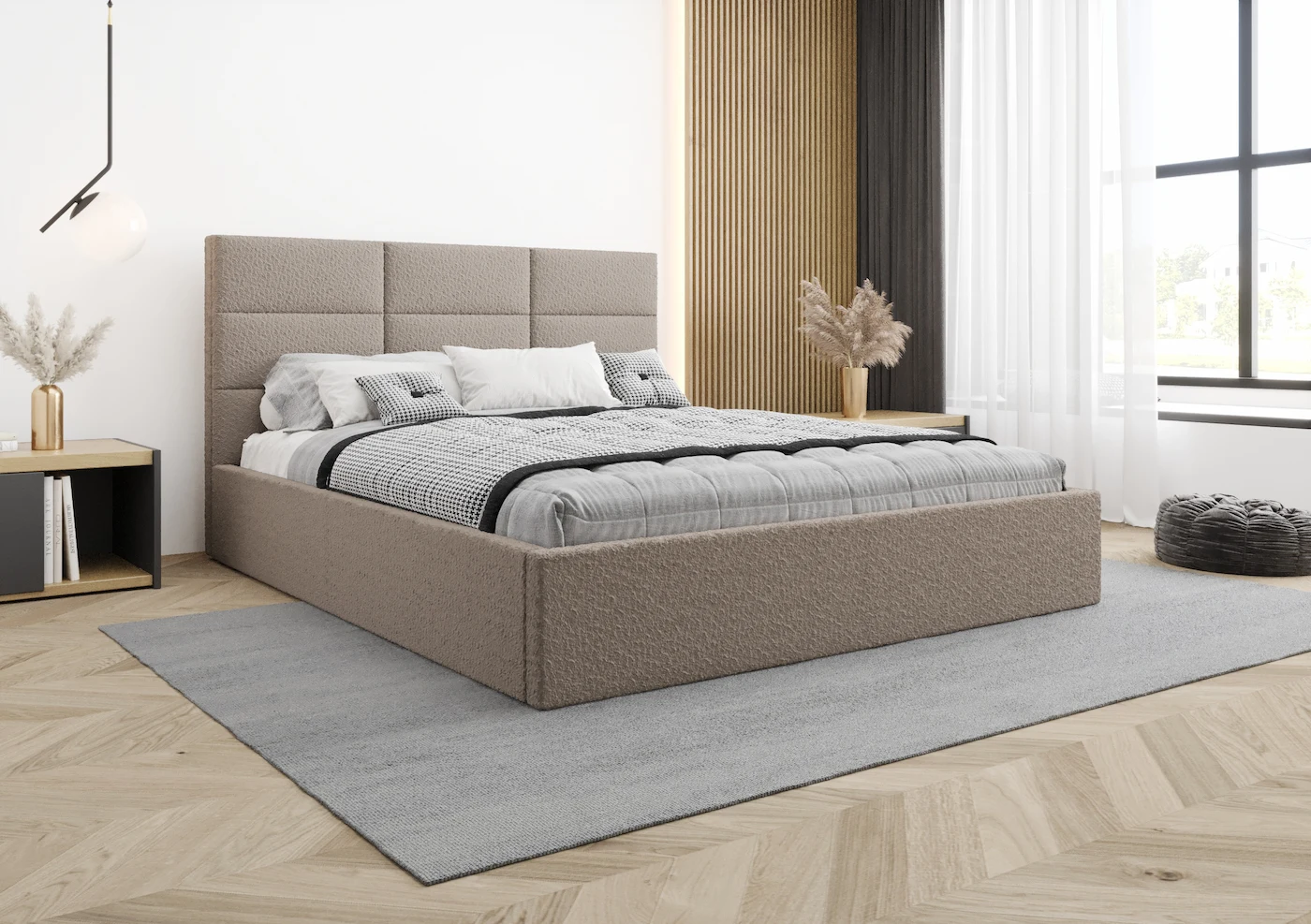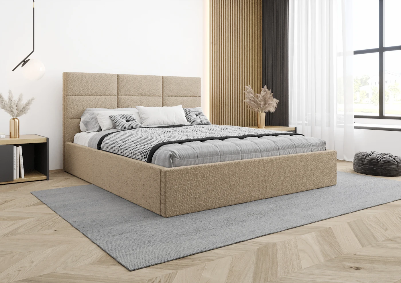 Łóżko tapicerowane 200x200 SYDNEY z pojemnikiem i stelażem beżowe tkanina welurowa