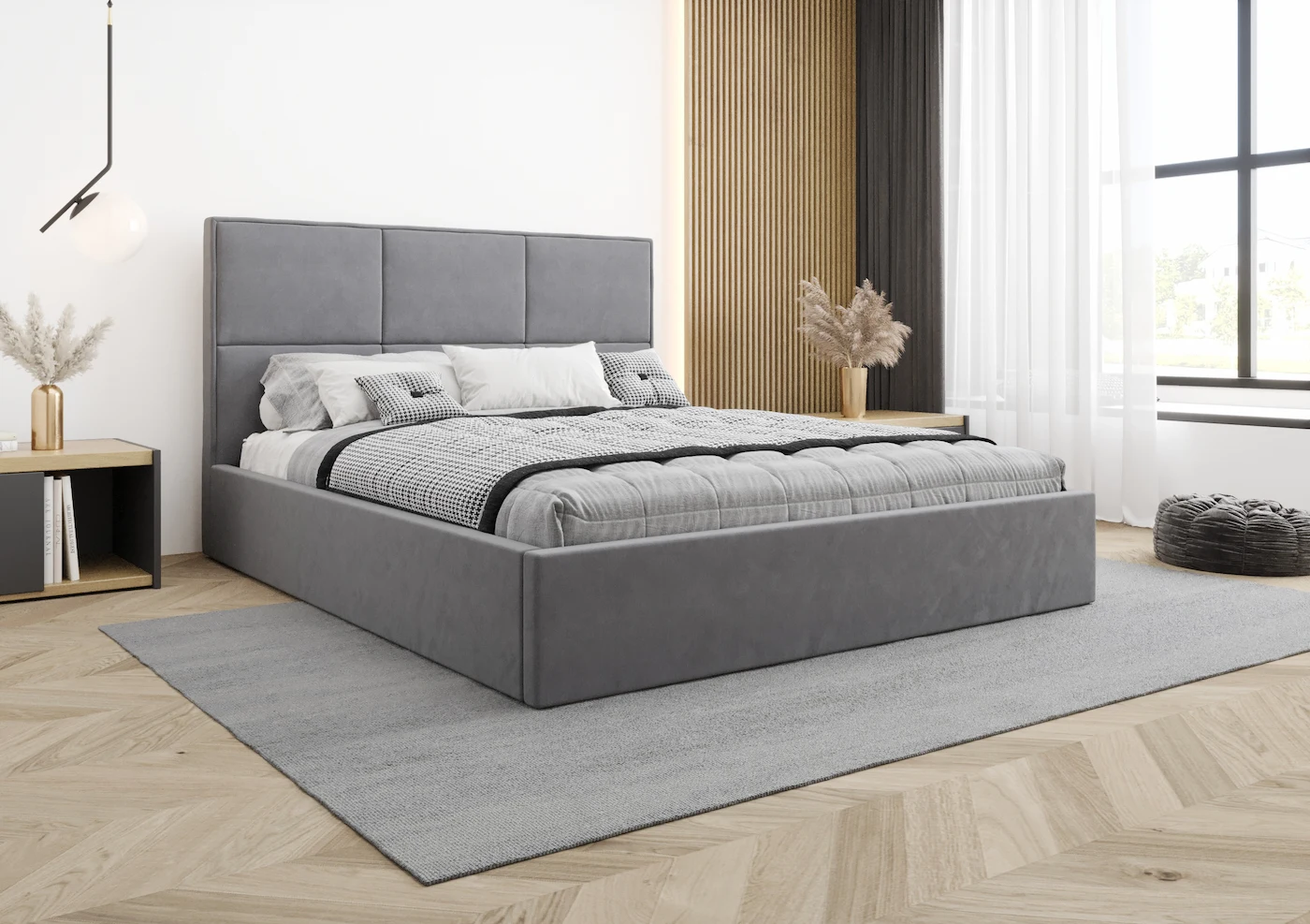 Najbardziej charakterystycznym elementem łóżka Tokio jest jego sześciopanelowy, tapicerowany zagłówek, który wyróżnia się nowoczesnym wyglądem i elegancją. Zagłówek zapewnia komfortowe oparcie podczas odpoczynku, a precyzja wykonania sprawia, że każdy egzemplarz jest niepowtarzalny i dodaje wnętrzu odrobinę luksusu.