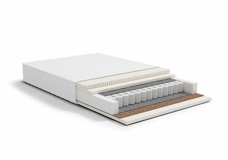 - Mata kokosowa – Naturalna mata z włókien kokosa dodaje twardości i zwiększa odporność materaca na odkształcenia. Jej struktura wspomaga cyrkulację powietrza, co zapewnia świeżość i higienę podczas snu. Mata kokosowa ma również właściwości antyalergiczne i antygrzybiczne, co tworzy zdrowsze środowisko snu.